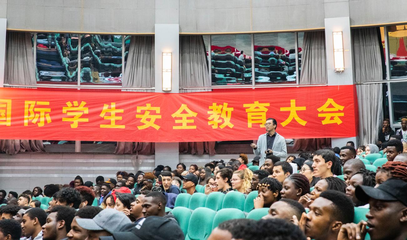 (留管部)辅导员钱江潮老师介绍了部门责任和分工、国际学生会(ISRC)的机构设置和成员,讲解了国际学生教学管理、校内外住宿管理、纪律处分规定、请假考勤制度和心理困惑帮扶渠道,结合正反面案例对非法就业、宗教活动、保险理赔、财物盗窃、网络诈骗等方面进行了警示教育,告知国际学生要遵守中国法律和校纪校规,学好中文和专业知识,做到专业学习和综合素质双提升,争做优秀国际生。他诙谐幽默、生动丰富的演讲赢得了在场师生的阵阵掌声,让国际学生在现场互动和交流中深化了对校纪校规的了解和理解。