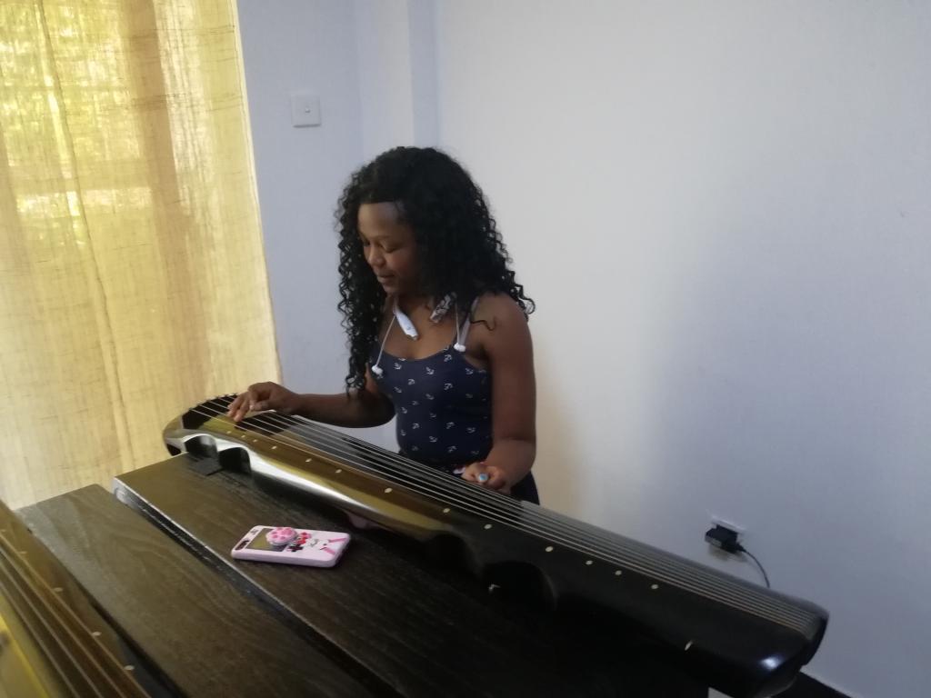 “这是我第一次弹奏古琴呢!没想到我和3000多岁的古琴也这么有默契!”加纳女孩Helan曾系统学习过钢琴,此次古琴学习是她来中国后的第一次民族乐器接触,她非常地激动。
