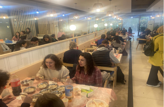 在餐厅,大家围坐一团,在食堂工作人员的指导帮助下,学习包饺子的技巧,食堂师傅的熟练操作让学生不禁发出赞叹。不一会,桌面上摆满了形状各异的饺子,方的、长的、圆的、扁的……欢声笑语就在这一揉一捏中慢慢发酵起来。