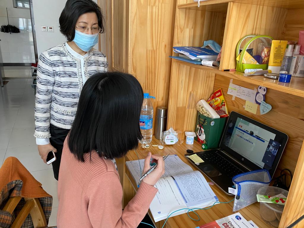 D区1号楼和2号楼40个寝室7个专业的学历生和语言生进行了线上课程走访工作,深入了解开学至今国际学生线上课程的上课状态、学习体会、以及对线上课程的意见与建议。在走访过程中,叶院长对留宿国际学生的线上教学提出了几点要求,包括按时上课、认真听讲等,遵守线上课程纪律,按时完成作业,为期末考试做好准备等。除了学习之外,叶院长同样关心疫情防控期间学生的生活情况,让国际学生感受到“疫情无情人有情”。