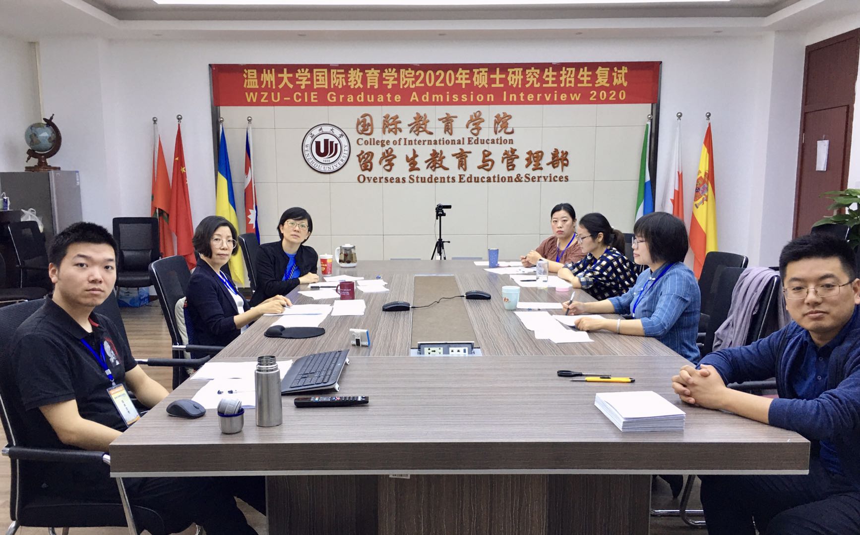 相关要求,严格做好试题保密工作。技术组积极参加技术人员培训,对网络复试平台进行反复测试,并逐一与考生在复试前进行调试,为复试顺利进行提供了强有力的技术支持。考官组负责对考生的专业素质和综合能力进行全面把关,面试工作从早七点一直持续到晚八点,一天内高效高质地完成了所有考生的面试工作。院办为复试工作提供了优良的后勤保障。
