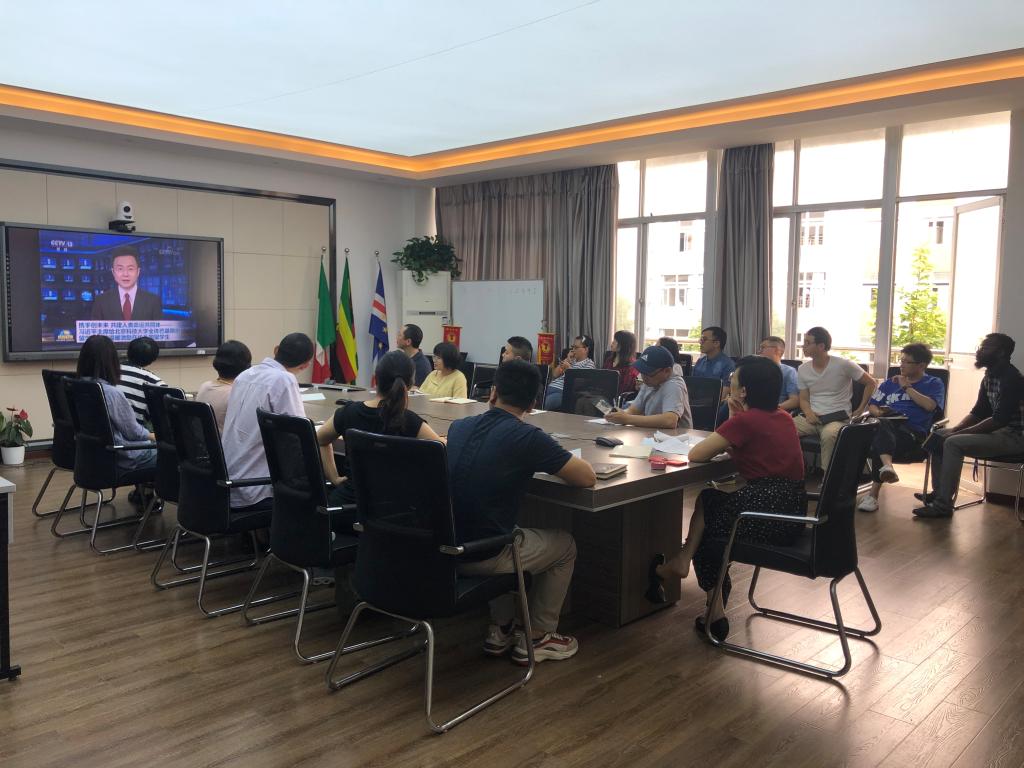 与会的教师们观看了相关视频,轮流宣读着习近平重要精神的相关文件,踊跃发言,积极讨论。大家形成共识:习近平总书记的重要回信内涵丰富、情真意切、催人奋进,是专门给来华留学生群体的回信,意义重大而深远,充分体现了以习近平同志为核心的党中央对新时代教育对外开放工作的高度重视和对广大来华留学生的亲切关怀,为下一步发展来华留学事业、加强优秀国际人才培养、加快和扩大新时代教育对外开放、提高我国教育国际影响力,指明了前进方向,提供了根本遵循。