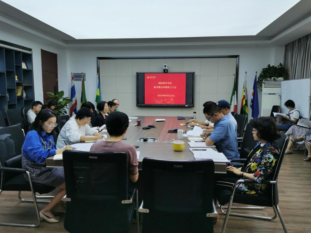 新学期教工大会在国际楼311会议室召开,党总支书记林爱菊主持。