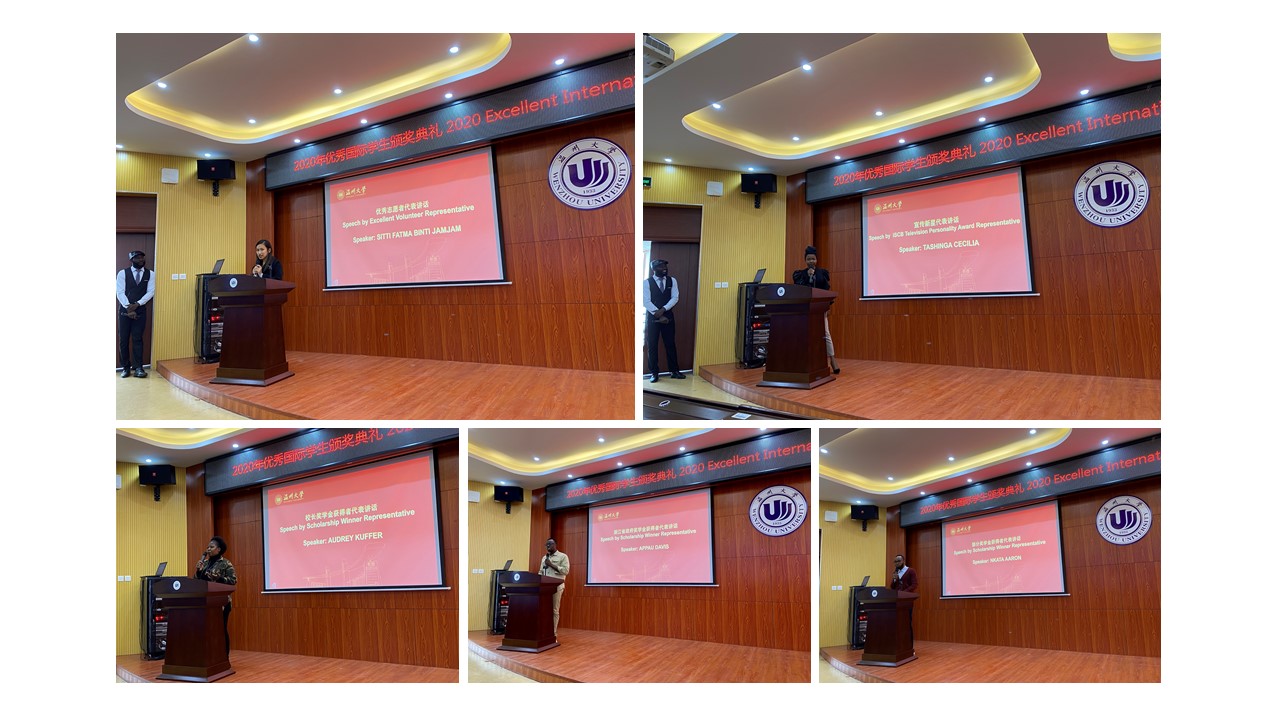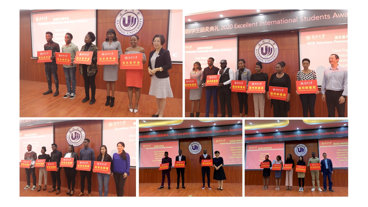 2020年校长奖学金、部分奖学金和浙江省政府奖学金获得者名单”的文件,现场奖学金获得者看到自己的名字出现在屏幕上纷纷欢呼鼓掌。嘉宾们依次为优秀国际学生们颁发奖学金证书,奖学金代表AUDREY KUFFER、NKATA AARON和APPAU DAVIS分别发表了获奖感言,鼓励大家继续努力学习,只有脚踏实地才能有所收获。看着台上获奖学生脸上灿烂的笑容,相信接下来他们会再接再厉,取得更大的进步。