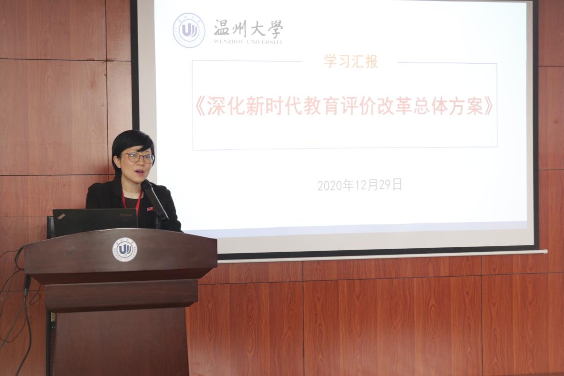 林爱菊老师带领大家共同学习了中共中央、国务院印发的《深化新时代教育评价改革总体方案》,她指出习近平总书记就深化教育评价改革作出一系列的重要指示批,为深化新时代教育评价改革指明了前进方向、提供了根本遵循。教育系统要深刻学习领会习近平总书记关于教育评价的重要论述精神,深刻领会“为什么改”“改什么”“怎么改”,增强深化新时代教育评价改革的责任感、使命感和紧迫感,明确重点领域、关键环节和主攻方向,找准推进路径、工作方法和有力抓手。