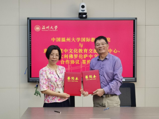 的基本情况、当前全球疫情影响下的教学形式,以及接下来一年的教学工作安排。他还提出了对此次合作项目及参与师生的一些希望和要求,同时也表达了对温大学子及教学质量的信任。最后,双方签订合作协议并交换协议书。
