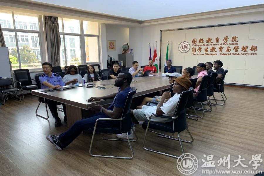 首先,温州市公安局出入境管理大队警官郑惕为国际学生介绍了我国的签证类型、签证政策与申请居留许可的材料,告知国际学生在学习期间必须持有效居留许可,不得从事就业等与签证类型不符的活动,以免受到处罚。随后,瓯海区茶山派出所民警周文涛向国际学生介绍了我国的重要法律法规和国际学生容易遇到的各类诈骗类型,特别强调了我国法律对毒品“零容忍”的政策。为增强学生对校纪校规的理解,学工办辅导员钱江潮重点讲解了区块链游戏
