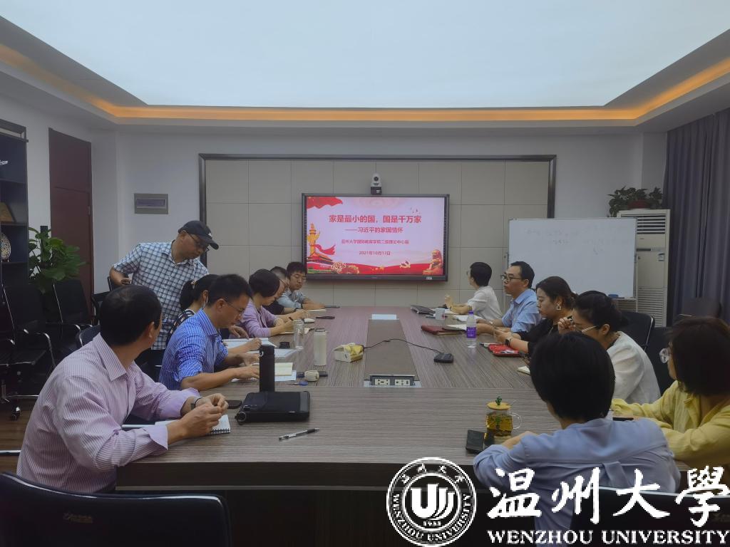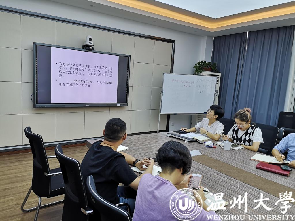 党总支书记林爱菊带领大家学习习近平总书记关于注重家庭家教家风建设论述。