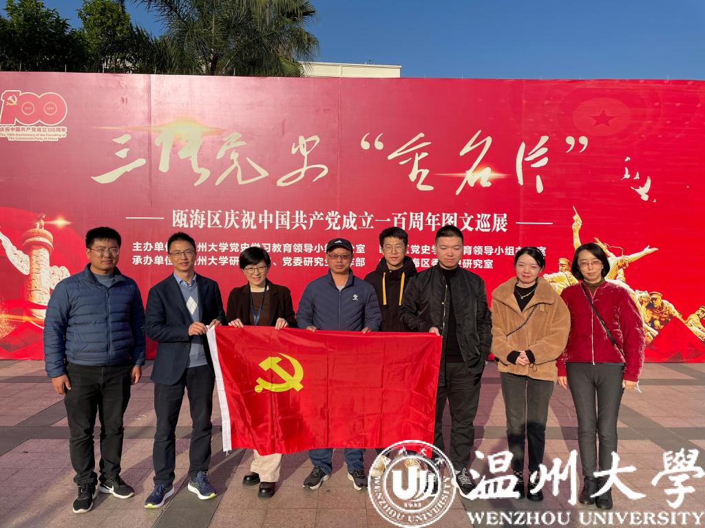 党总支组织师生党员代表前往教工餐厅前广场参观了主题为“百年荣耀,潮涌瓯江”的党史教育图片展。本次展览内容主要是瓯海区三张党史“金名片”,中共浙南第一次代表大会(被誉为“浙南红色革命的火种”)、温州和平解放谈判(被誉为“温州和平解放的摇篮”)、燎原社“包产到户”(被誉为“中国农村改革的源头”)。师生党员在一张张历史图片前驻足思考,深刻感受中国共产党人领导人民争取民族独立、人民解放、国家富强和人民幸福的光辉历程。参观中,党员们交流感悟,抒发心情。