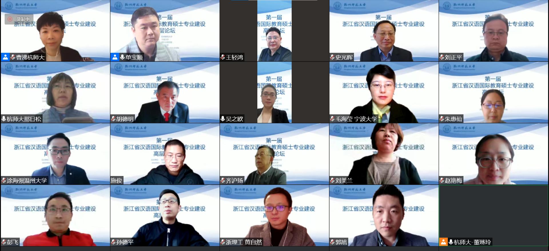 承办,在腾讯会议上举行了第一届浙江省汉语国际教育硕士专业建设高层论坛。大会围绕汉语国际教育硕士培养方案出现的问题与困惑进行了深入的交流,就相关问题达成共识,受益良多。