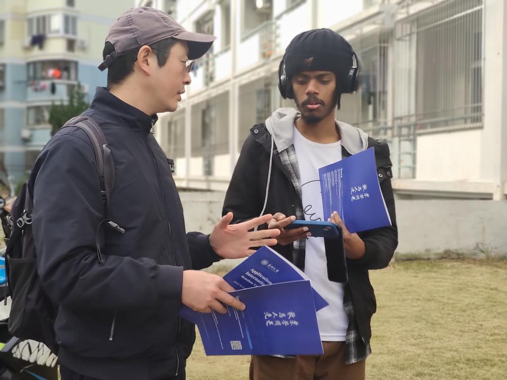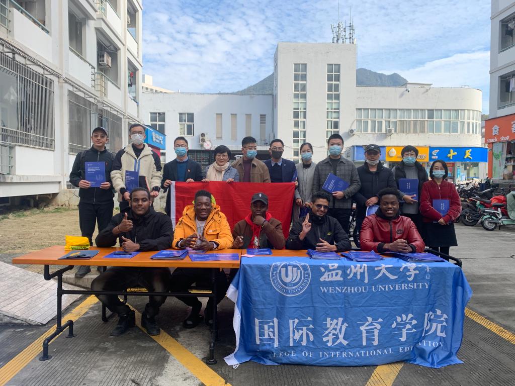 党员们手里拿着《Application Guide for Inernational Students Wenzhou University》小册子,深入国际生寝室,向国际生详细介绍了区块链游戏