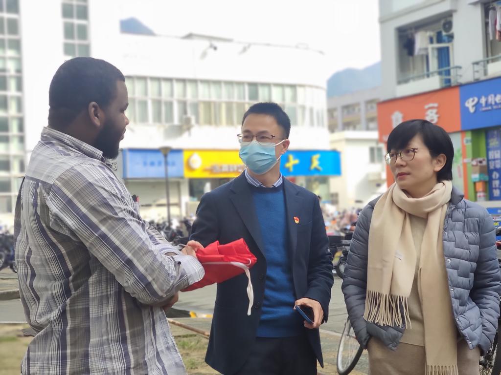 国际学生招生政策,把招生简章发放到国际学生手中,现场讲解,进行了一场别开生面的主题党日活动。