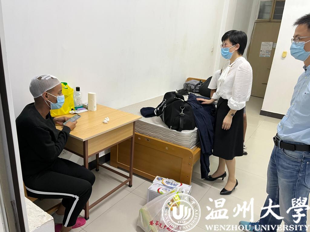 党总支书记林爱菊、副书记方建晓、辅导员吴铨铨来到留学生公寓看望慰问生病的埃塞俄比亚籍留学生ZEMENE BETELHEM BAYE。