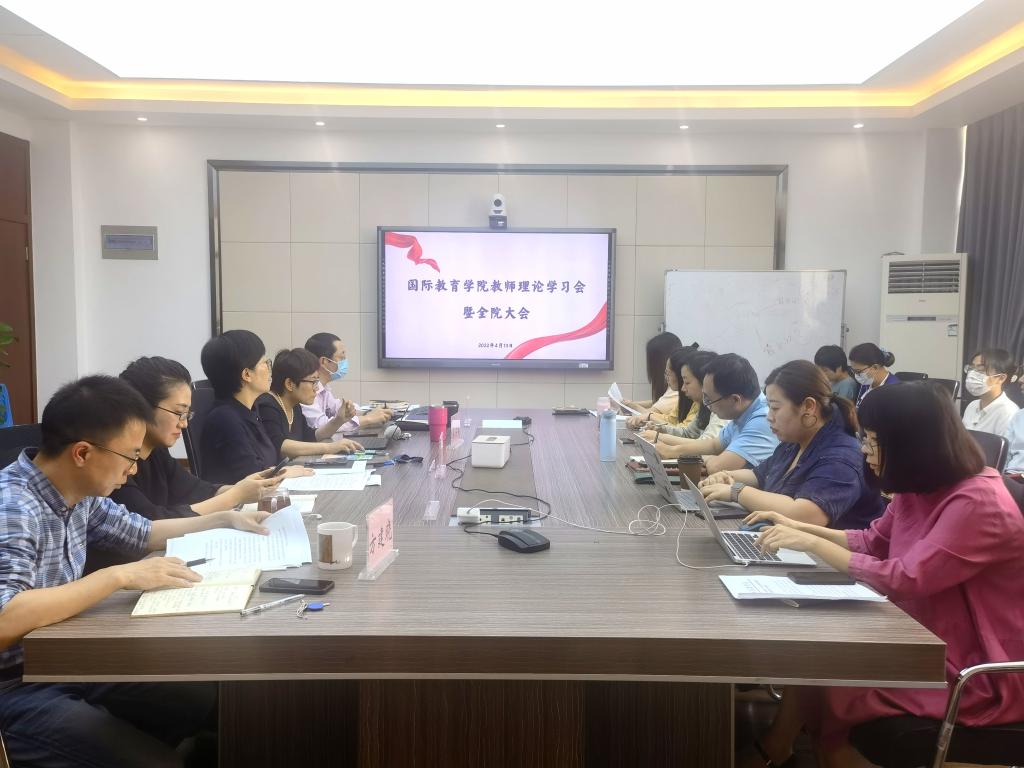 全体教师在国际楼311会议室召开教工理论学习会暨全院教工会议,书记林爱菊主持。