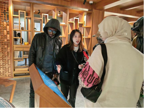 国际学生国情教育名师工作室暨“走进温州”开启了本学期系列活动的第一站——永嘉学派馆。来自俄罗斯、韩国、意大利、英国、尼日利亚、泰国、越南、孟加拉国、土耳其、摩洛哥、津巴布韦、博茨瓦纳、埃塞尔比亚、刚果、肯尼亚、赞比亚、土库曼斯坦等24个国家和地区的留学生们一起了解并学习了永嘉学派的发展历程、主要代表人物及其思想和影响等。留学生们兴致勃勃,非常认真地投入,也纷纷表示很开心能够有这样的机会近距离接触博大精深的中国传统文化。