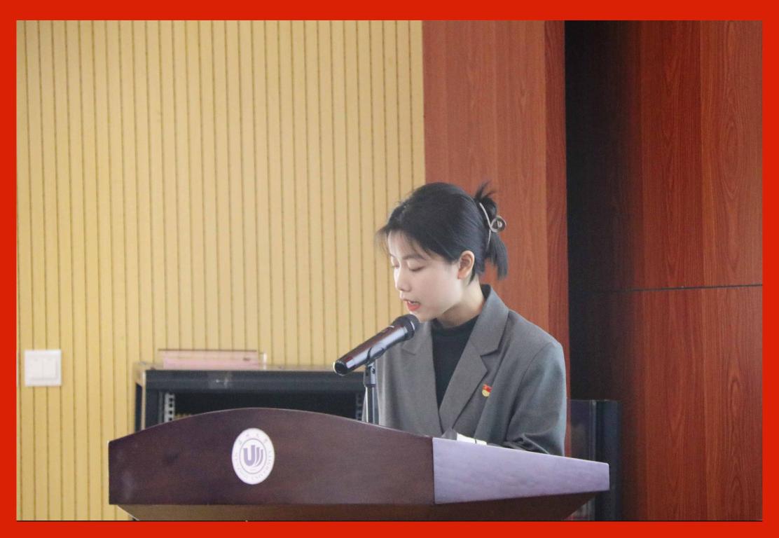 的李之瑶同学作为学员代表发言。她呼吁全体学员新的时期赋予我们新的机遇和挑战,“恰同学少年,风华正茂”就是我们当代大学生应该有的精神面貌,我们这些“恰同学”是国家的希望,也是党的后继力量,让我们谨记时代的重托,持之以恒,在实践中学知识、强理论、长才干,不断提高和完善自我。