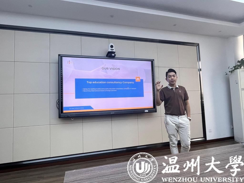 的基本情况。他希望双方在招生宣传方面加强交流与合作。DANG MINH QUANG对NI HAO EDUCATION从成立背景、组织架构、发展理念、成功案例等方面进行了详细介绍。他希望通过双方努力,助力更多越南优秀青年来温大留学。