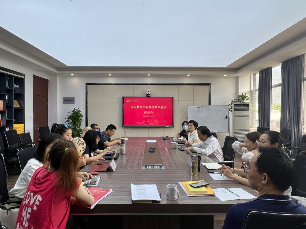 师德师风建设工作开展情况进行了深入的了解。随后,专任教师、科室负责人分别就科研项目申报、职称评定、国际生教学、国际生招生、国际生管理、课程思政建设、国际生学评教等问题提出了相关建议。蔡曙光副校长认真听取了与会教师的建议与诉求并作相关笔录,和与会教师进行了深入沟通与交流,作出细致翔实的解答。与会教师畅所欲言,会场气氛热烈。
