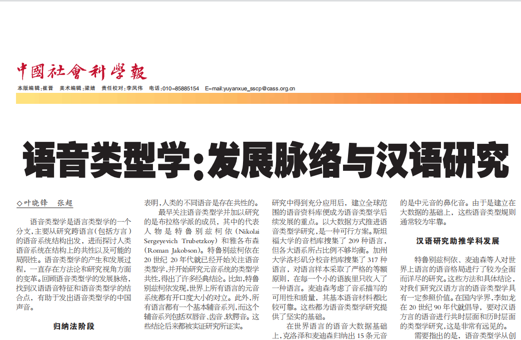 总而言之,语音类型学最初在印欧语基础上总结和发展起来,目前仍具有印欧语中心倾向。中国学者如果在进行语音类型学研究时,能够基于汉语形成问题意识并深入探索,则将为语音类型学的发展贡献来自中国的创新力量。