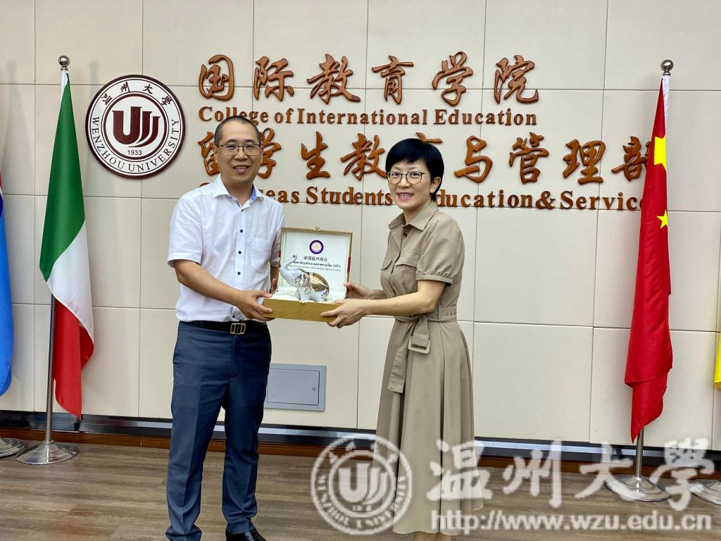 2023年7月14日,泰国温州商会会长郑炳克、常务副会长薛圣萍、章圣利、会务顾问沈高良、陈敏一行来院交流洽谈。国际交流与合作处副处长郑婷、区块链游戏