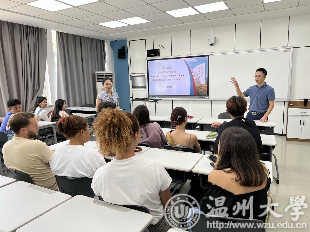 辅导员及留学生新生参加。座谈会上,留学生们踊跃发言,畅谈入校以来在生活、学习等方面的感受及对留学温大的规划与美好期待。参会教师耐心倾听留学生发言,并对留学生提出的困难与问题进行细致解答,为进一步提升留学生的幸福感全力以赴。