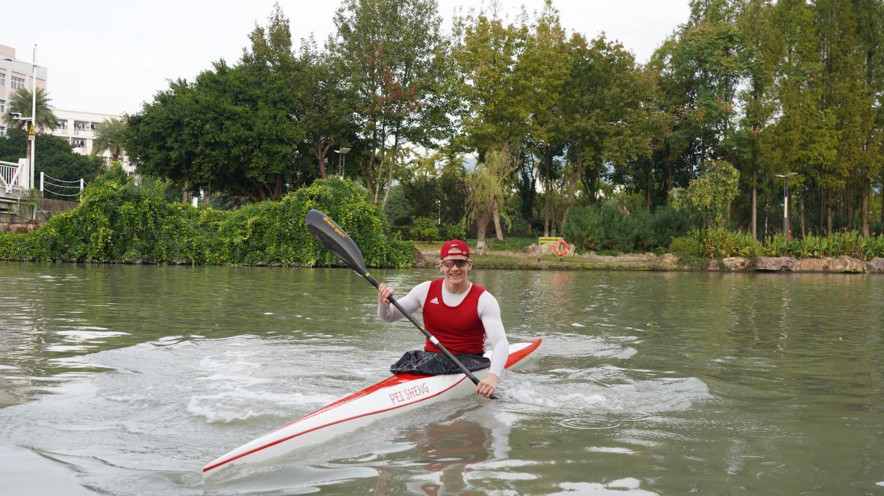 留学生BURKOV MIKHAIL(中文名卜麦克),乘皮划艇畅游塘河,沉浸式感受百里塘河的千载风华,体味瓯越文化的独特魅力,从千年商港起航,讲述大美中国故事!