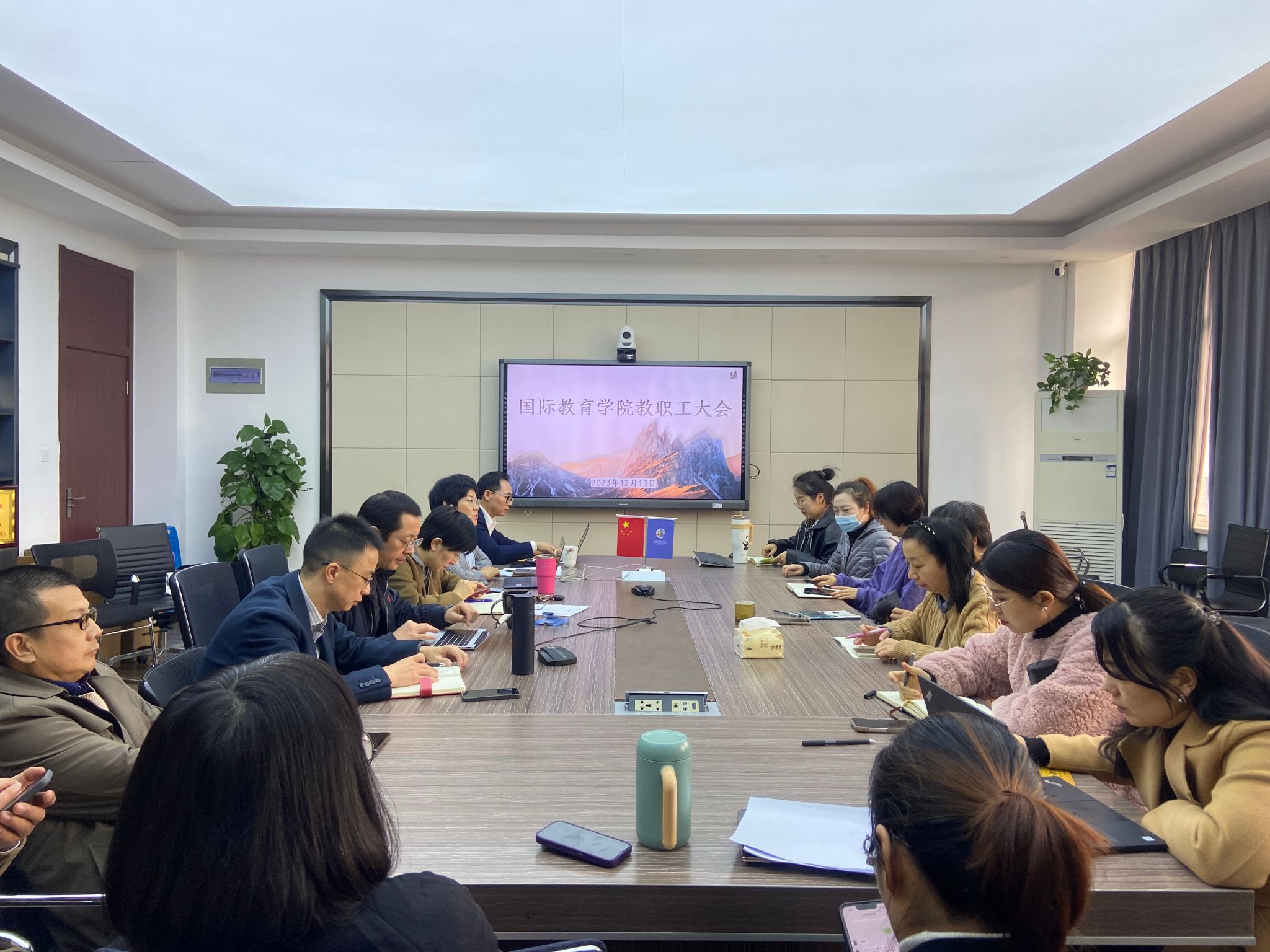 全院教师在国际楼311会议室召开全院教职工大会,会议由党总支书记林爱菊主持。