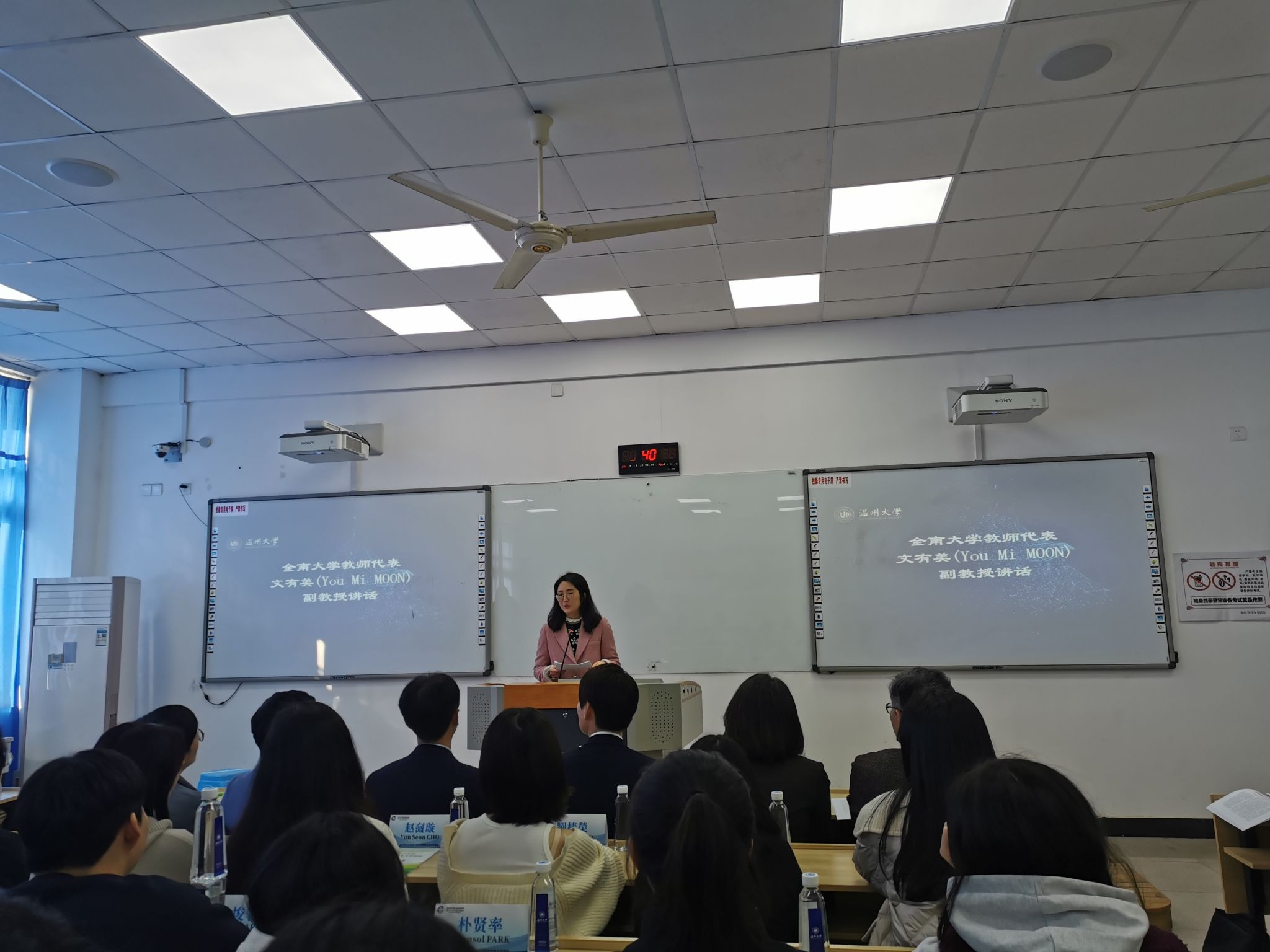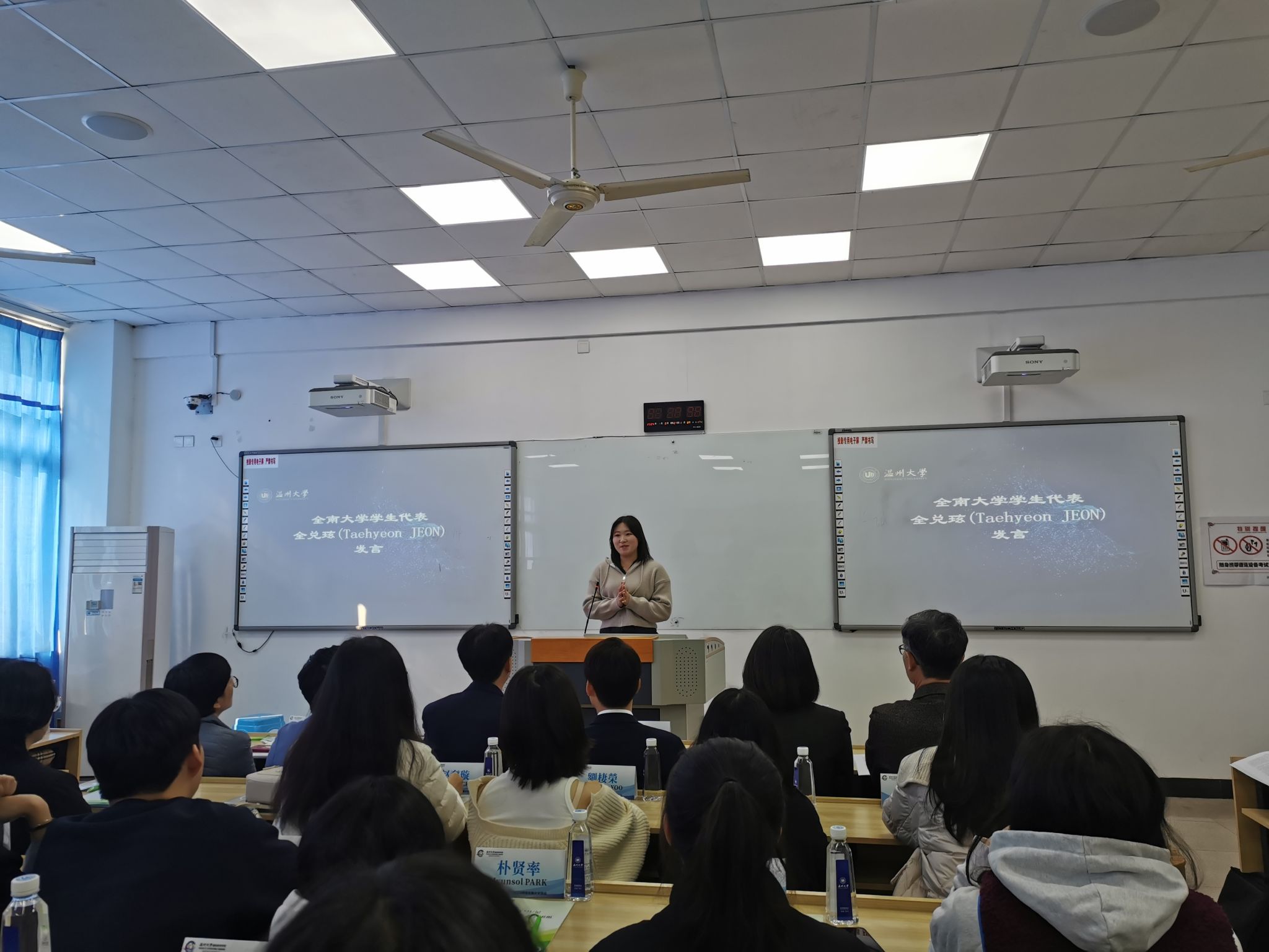 最后,全南大学的学生代表全兑玹表达了学生对本次学习之旅的期待,表示自己和同学们一定会好好学习,不负老师们的殷殷嘱托。
