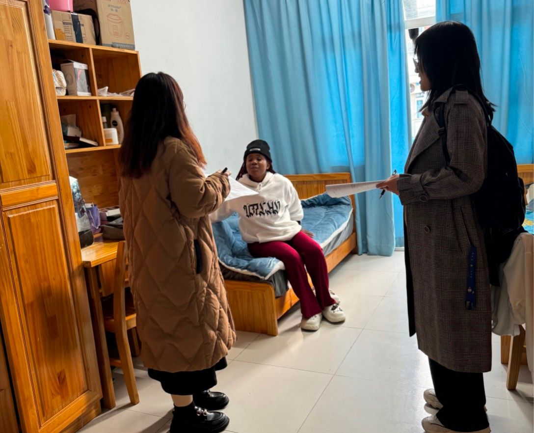 对他们的关心关爱之情;二是检查了学生住宿公寓的用水、用电、取暖情况以及校外住宿的小区消防安全、环境卫生情况,并对检查中发现的问题进行认真记录,第一时间进行整改;三是了解学生的假期安排和学业情况,强调要遵守校规校纪,加强防范意识,常与家人联系,度过一个平安顺遂、快乐有收获的假期。