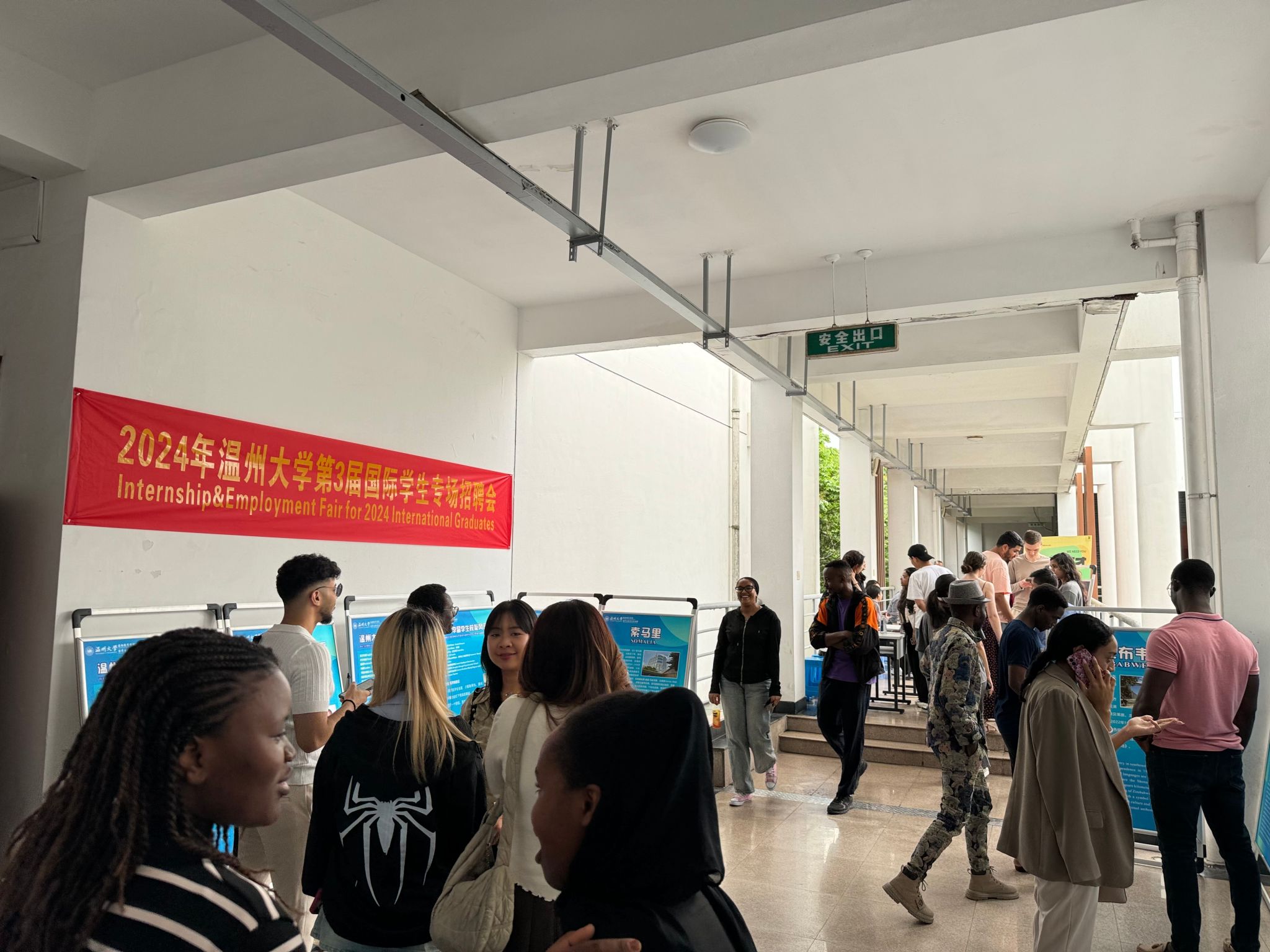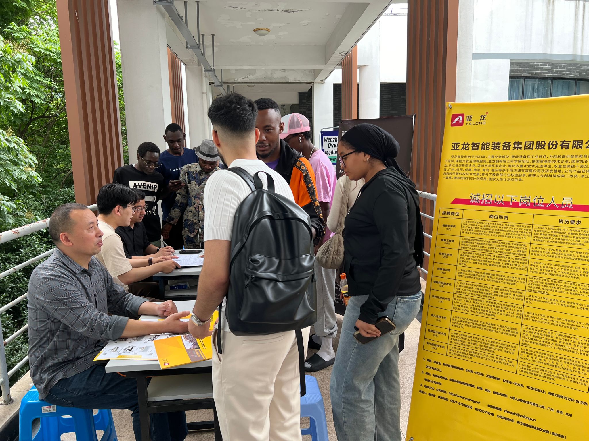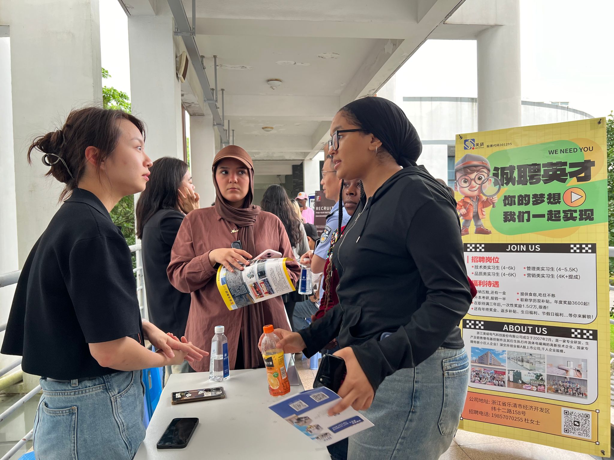 国际楼热闹非凡,第三届国际学生专场招聘会如期举行。来自津巴布韦、越南、葡萄牙、摩洛哥等30多个国家的100名国际学生参加,浙江美硕电气科技股份有限公司、江苏易来德实业发展有限公司、温州市海外传播中心等10余家用人单位参展。