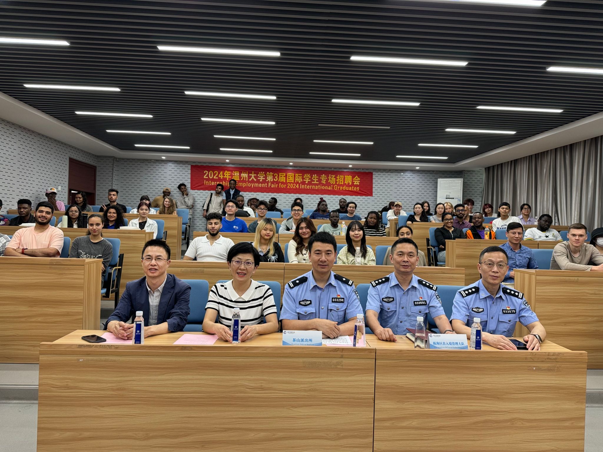 在签约仪式之后,温州市瓯海区出入境和茶山派出所的代表详细介绍了毕业生离校与留温政策。这些政策为留温工作的国际学生提供了便利条件,得到了在场学生的热烈响应。随后,16级硕士毕业生ADOFO MICHAEL ADJEI(洪太阳)分享了他在温学习和工作的经验,鼓励在校国际学生学好汉语、抓住机遇,积极融入。