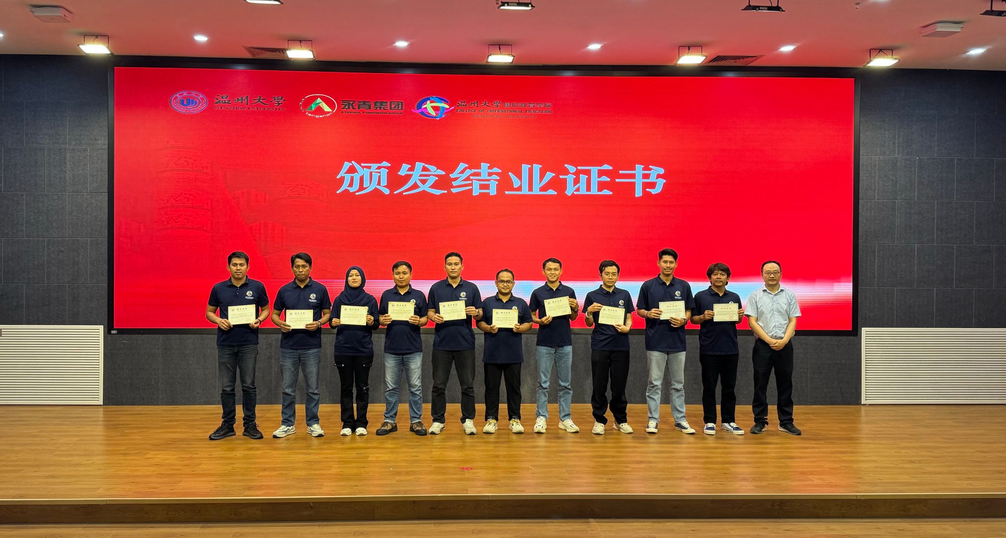 林爱菊书记充分肯定学员们在学习上取得的进步,并希望他们把结业作为新的起点,坚持加强汉语学习。并期待他们都能成为来过中国、来过温大留学的,懂中国、会中文的印尼籍的中国好朋友和温大好校友。