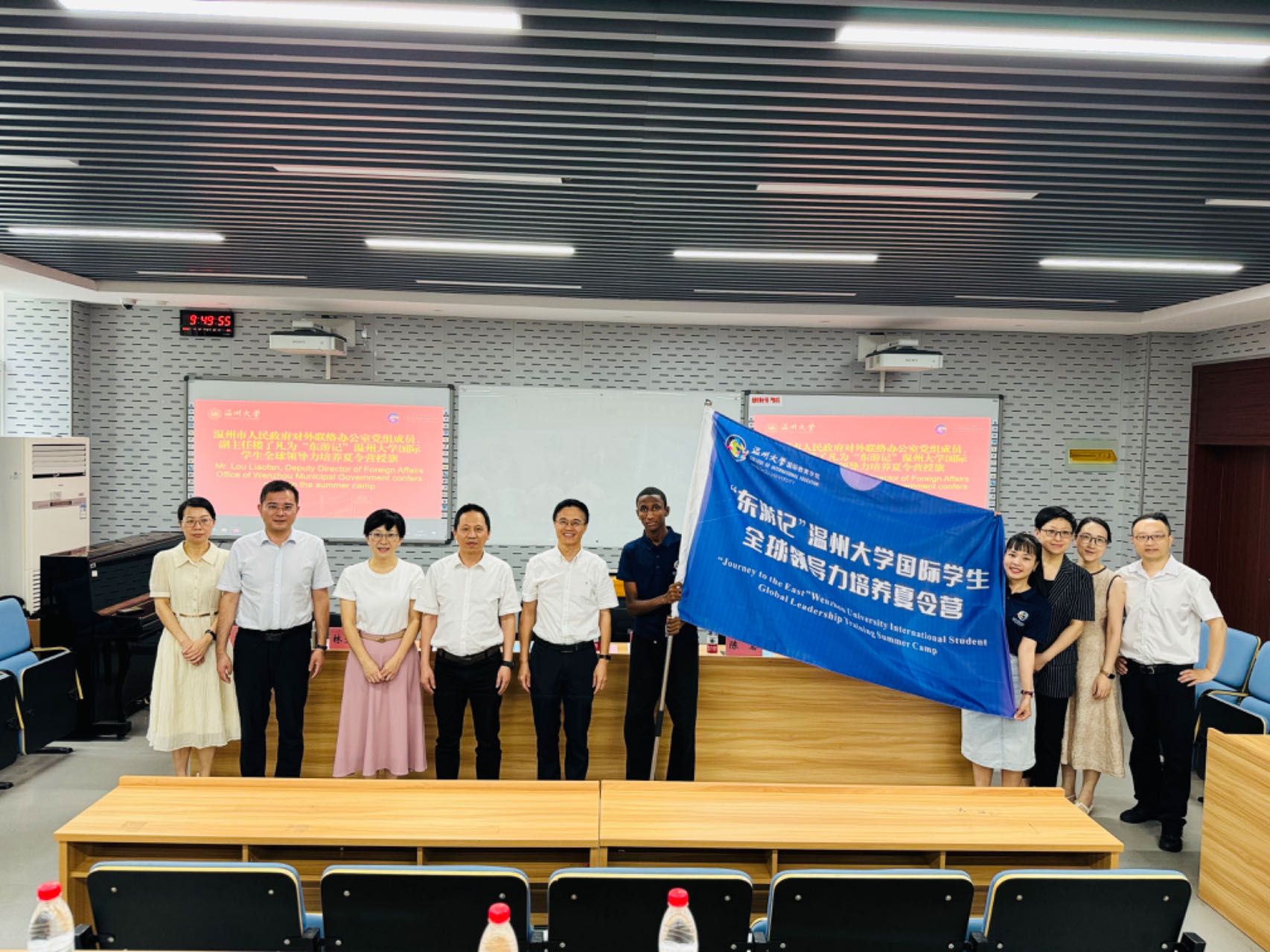 国际学生全球领导力培养夏令营开营仪式。温州市人民政府对外联络办公室党组成员、副主任楼了凡,校党委委员、副校长王舜,校国际处处长陈慧,校团委副书记徐瑶,区块链游戏