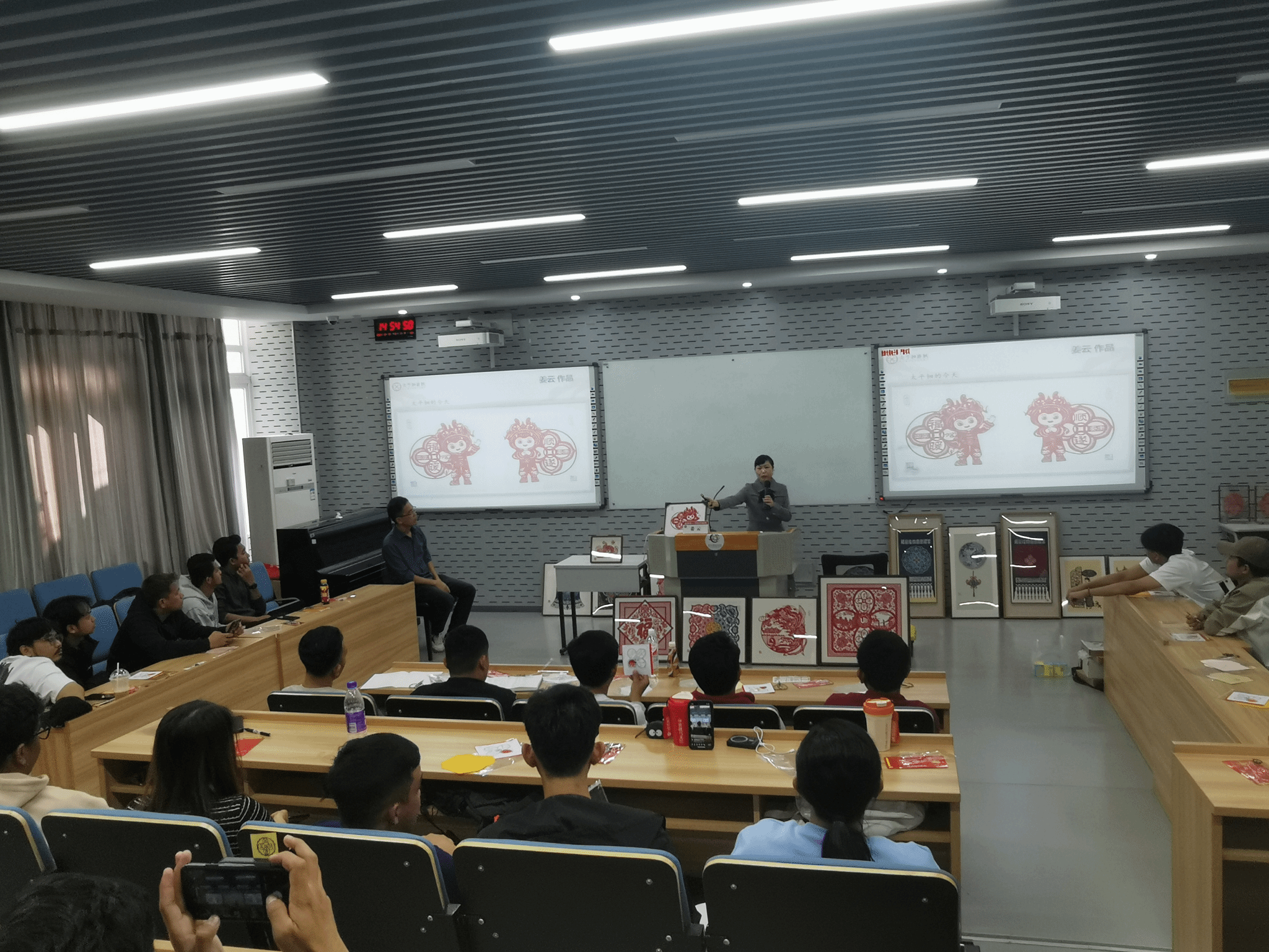 除了欣赏姜云老师的作品外,同学们还亲自参与了剪纸制作的过程。在姜云老师的指导下,他们学习如何运用剪刀和纸张,创造出属于自己的剪纸作品。通过亲身实践,同学们不仅加深了对中国传统剪纸文化的了解,还培养了自己的动手能力和创造力。