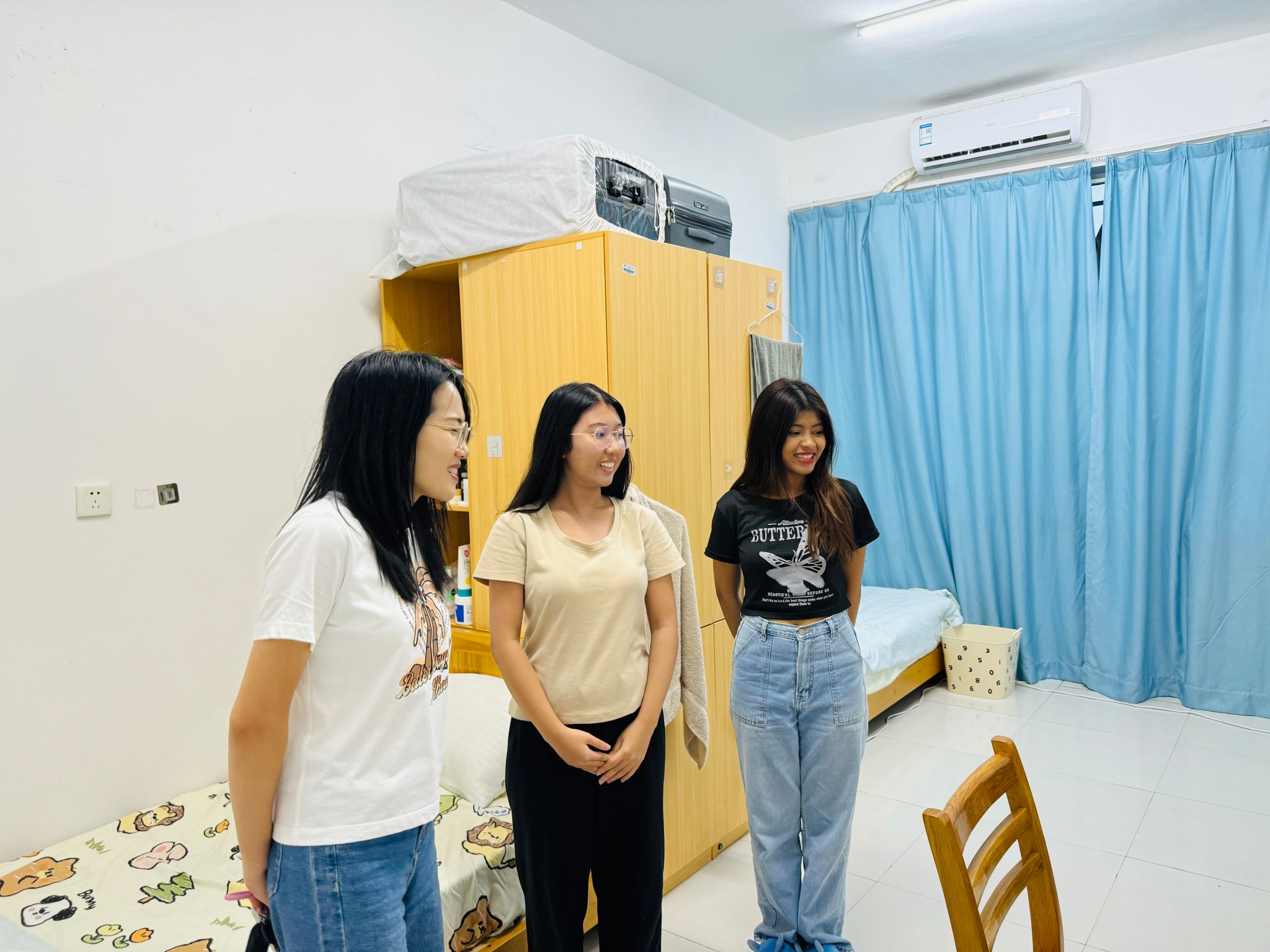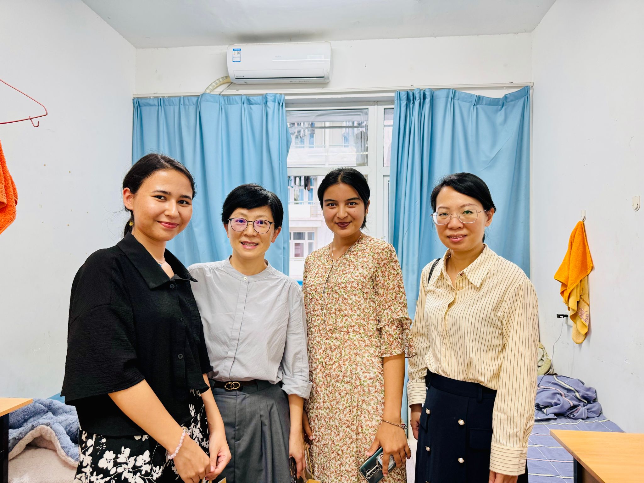 随后,学工办全体辅导员还对国际学生宿舍安全及卫生进行检查,对发现的问题及时提醒同学们整改,并耐心地向大家强调了注意安全和保持宿舍整洁的重要性,鼓励大家共同努力,营造一个安全、舒适、文明的居住环境。