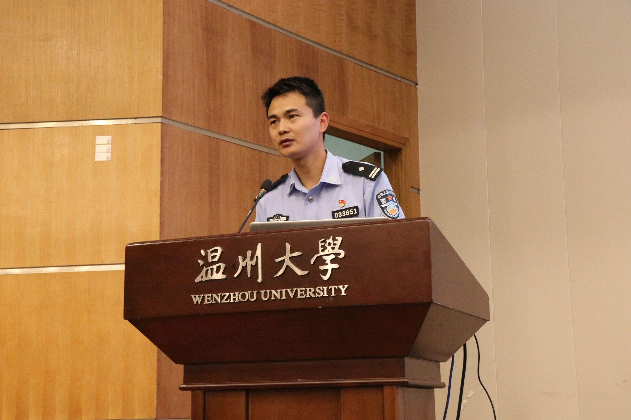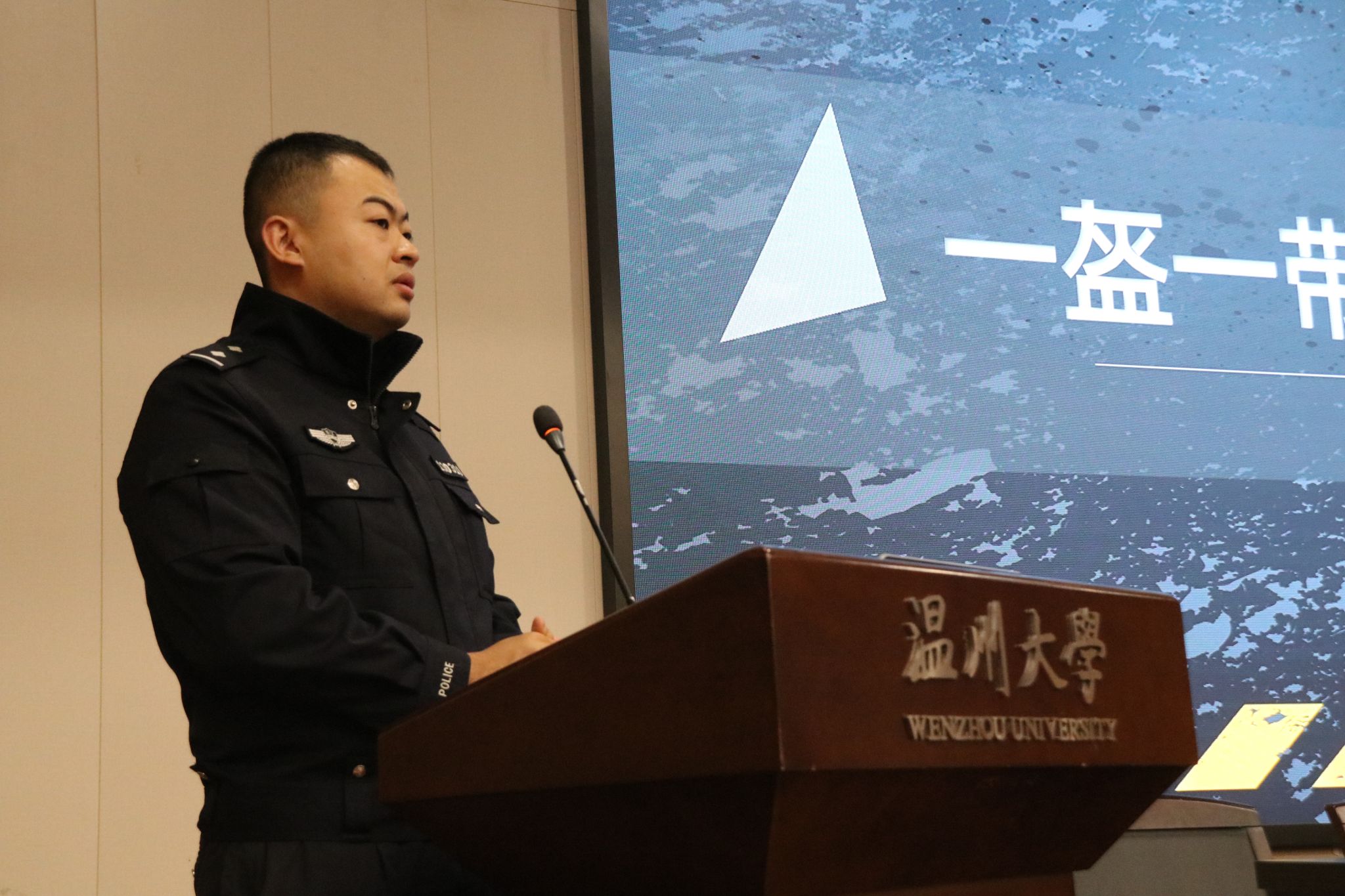 随后,温州市交警四大队八中队副中队长邱强楠以 “最贵的一分钟” 为主题,开启了一场别开生面且极具教育意义的交通安全宣讲活动。他通过播放部分交通事故视频片段,那些惊心动魄的瞬间,让现场学生深刻领悟到这 “最贵的一分钟” 背后所蕴含的沉重代价。他结合实际案例强调遵守交通安全的重要性,并向国际学生传递交通安全知识,做到安全出行、文明出行,让交通安全意识真正入脑、入心。