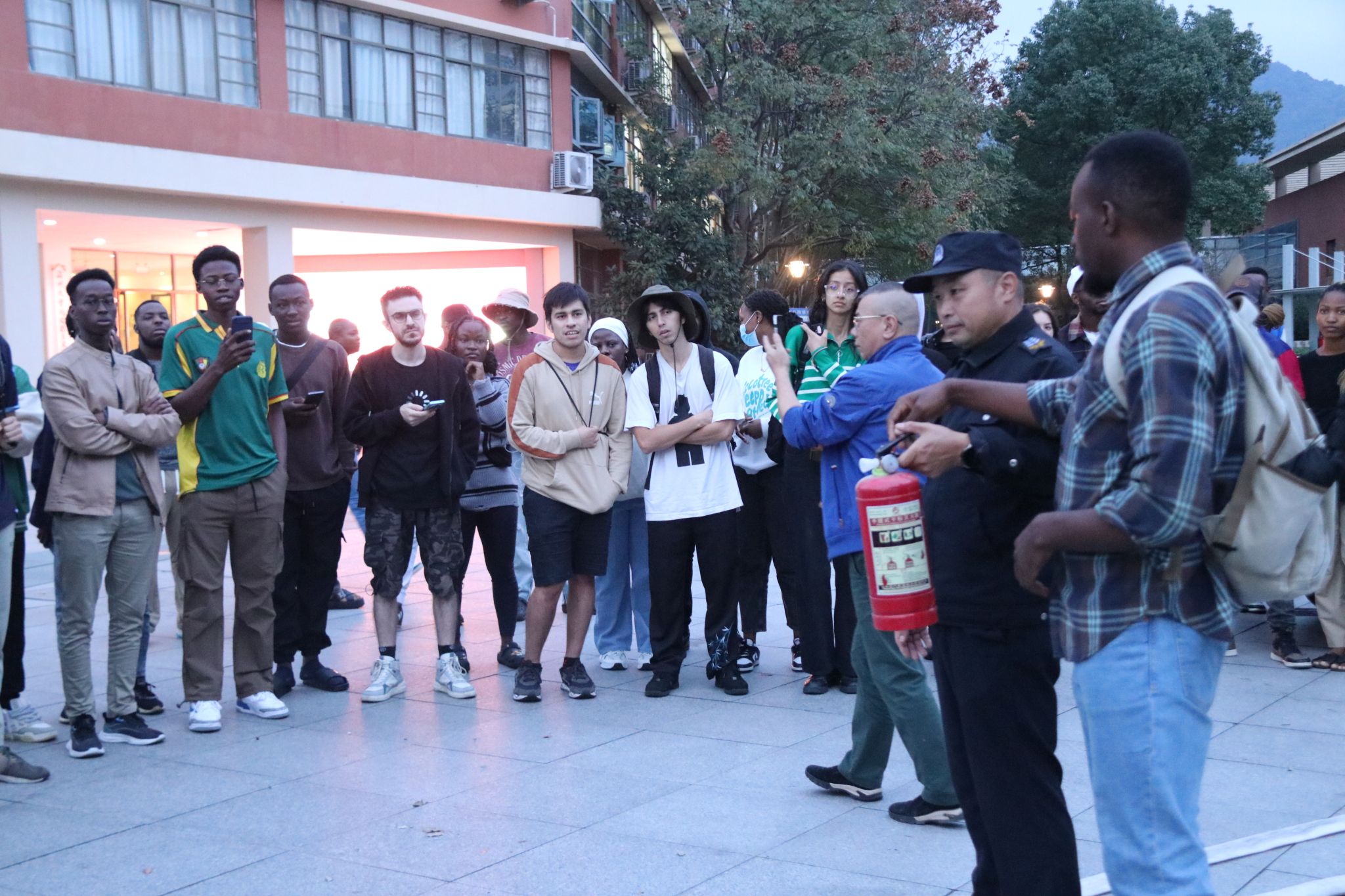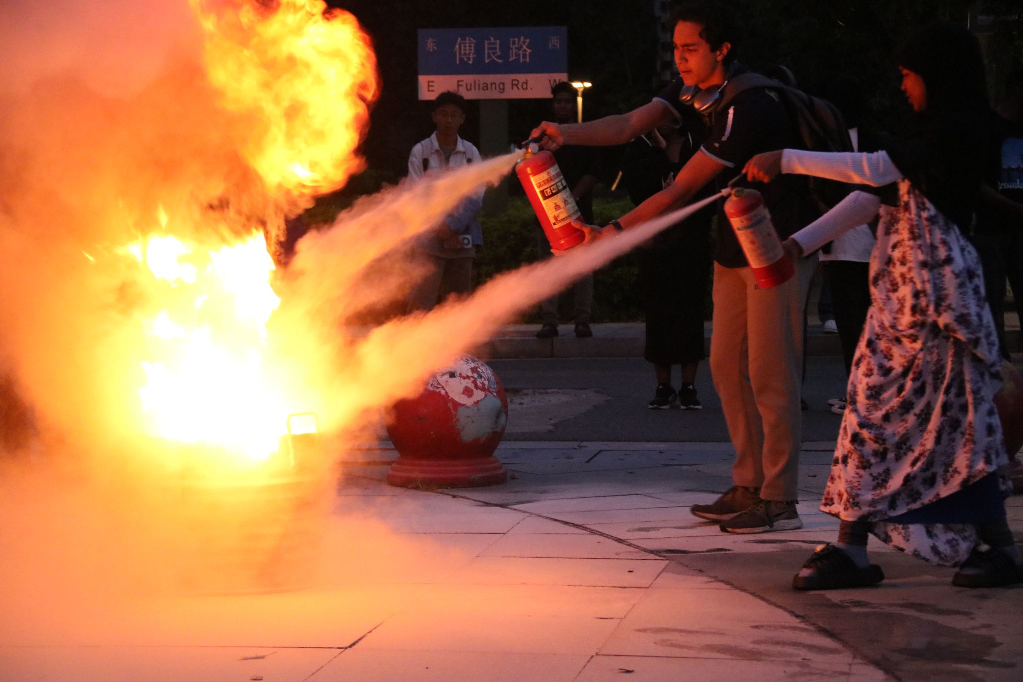 专业人员的指导下,国际学生们学习了如何使用灭火器以及在火灾发生时迅速而有序地撤离。通过模拟火灾现场,学生们亲身体验了使用灭火器及紧急疏散的过程,这不仅提高了他们的消防安全意识,也增强了他们在紧急情况下的自救能力。