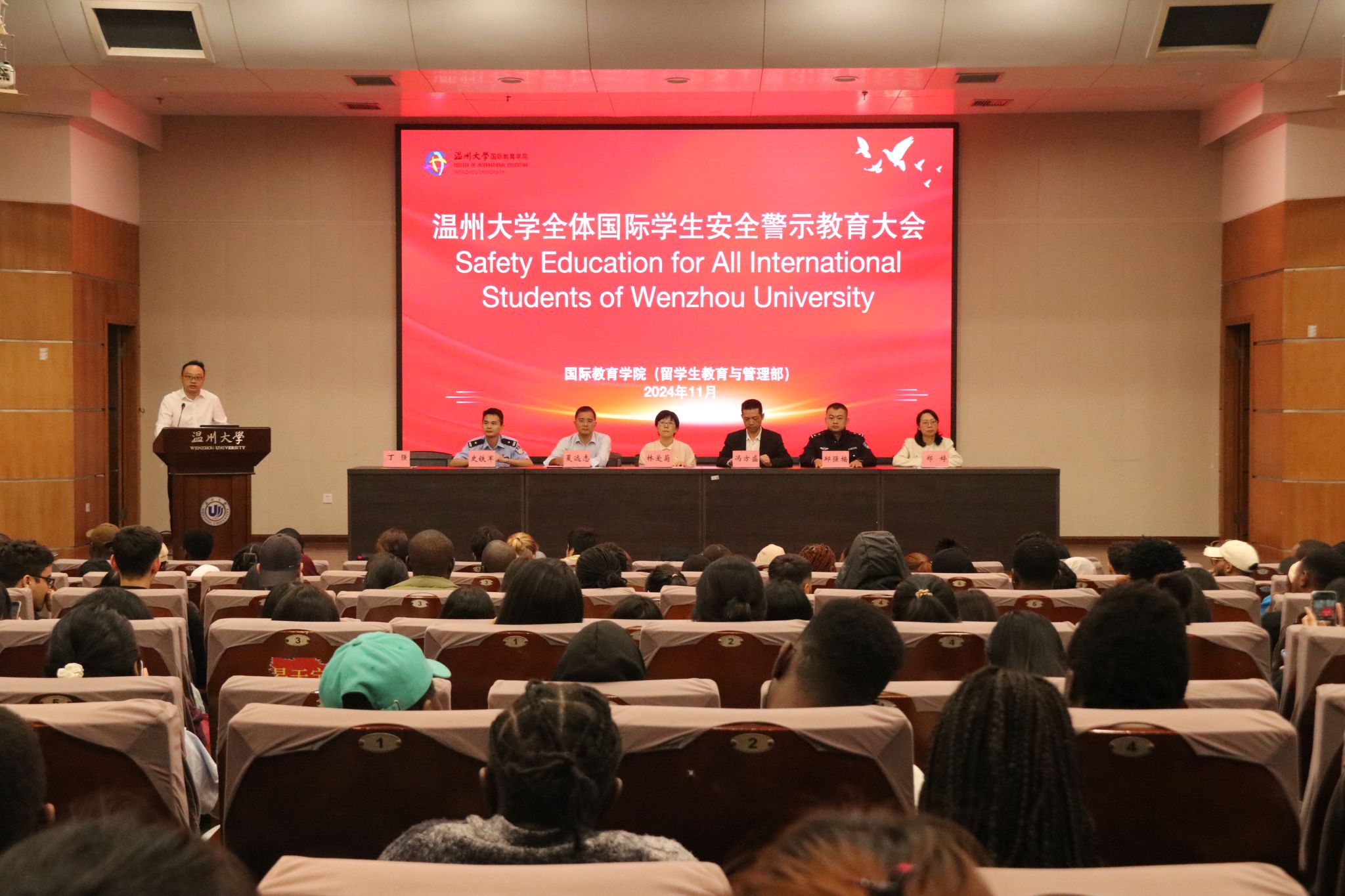 发展稳定的基石,是学生学习生活的基本保障。通过本次安全教育大会,希望全体国际学生今后一定时刻紧绷安全这根弦,严格遵守各项安全规定,以实际行动践行安全责任,有效提高自身安全防范能力,顺利度过美好的留学生活。