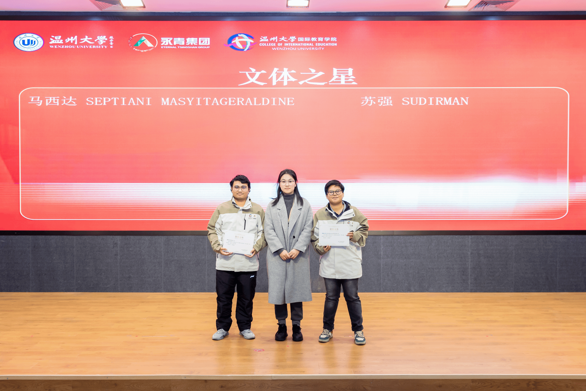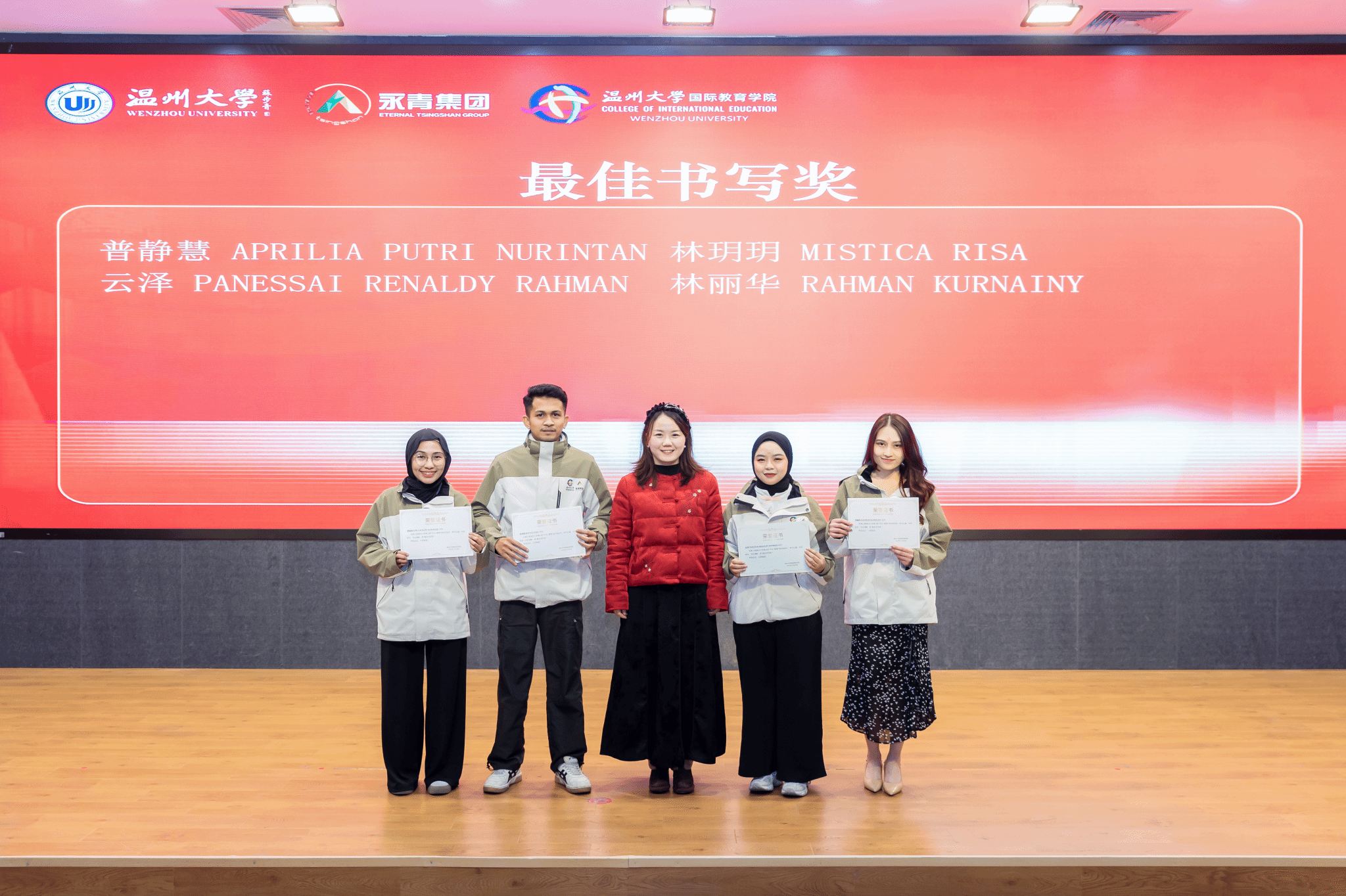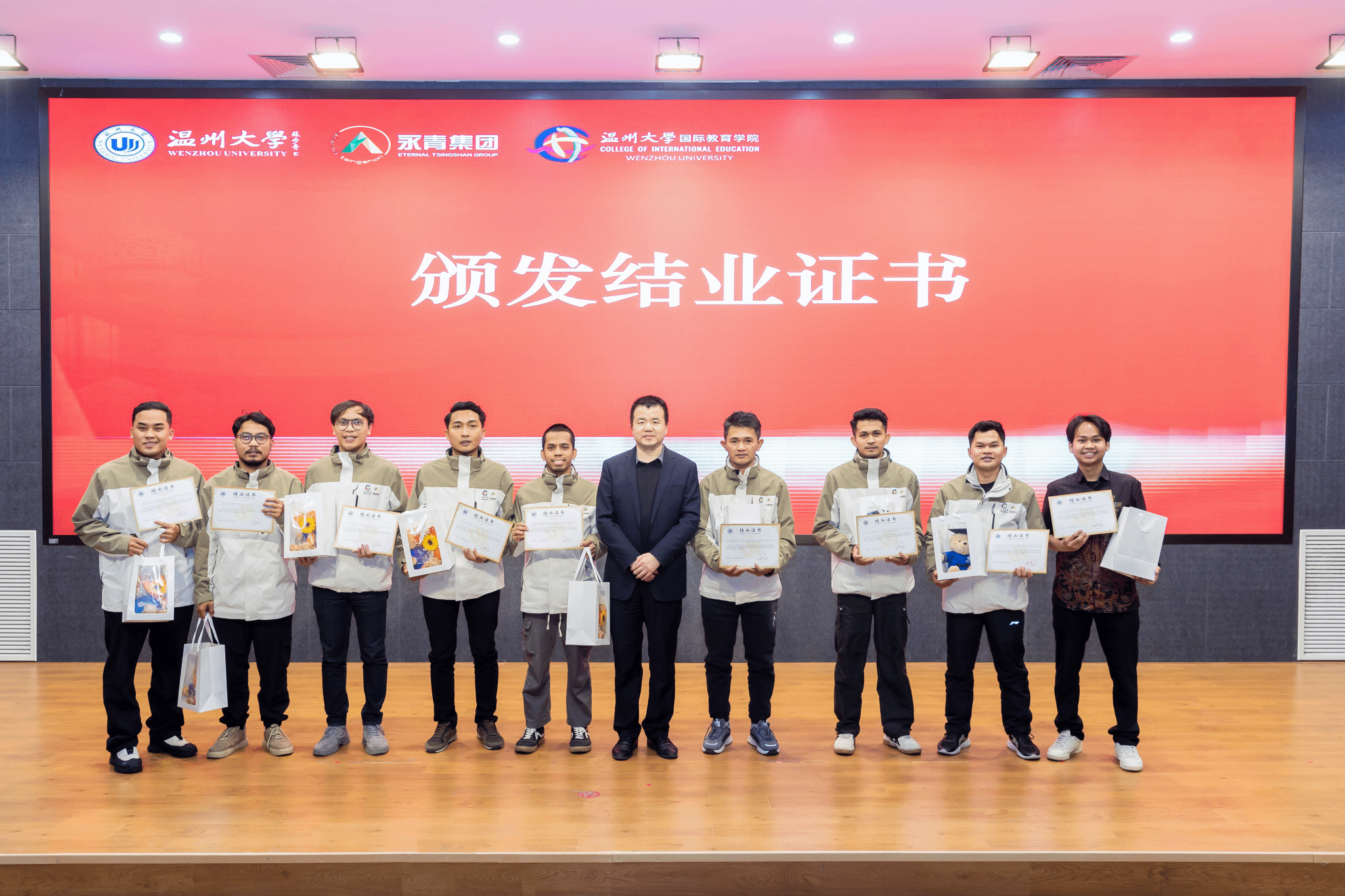 颁奖环节后,学员们开始学习成果汇报演出,包括歌曲、朗诵、舞蹈等。学员们不仅展示了汉语学习的成果,还将中国文化与印尼文化相融合,展现了不同风味的舞蹈,现场氛围热烈,欢声笑语不断。结业典礼在《再见》的合唱中缓缓落下帷幕,祝愿第三期“温大青山班”的学员们锦绣前程,一路生花!