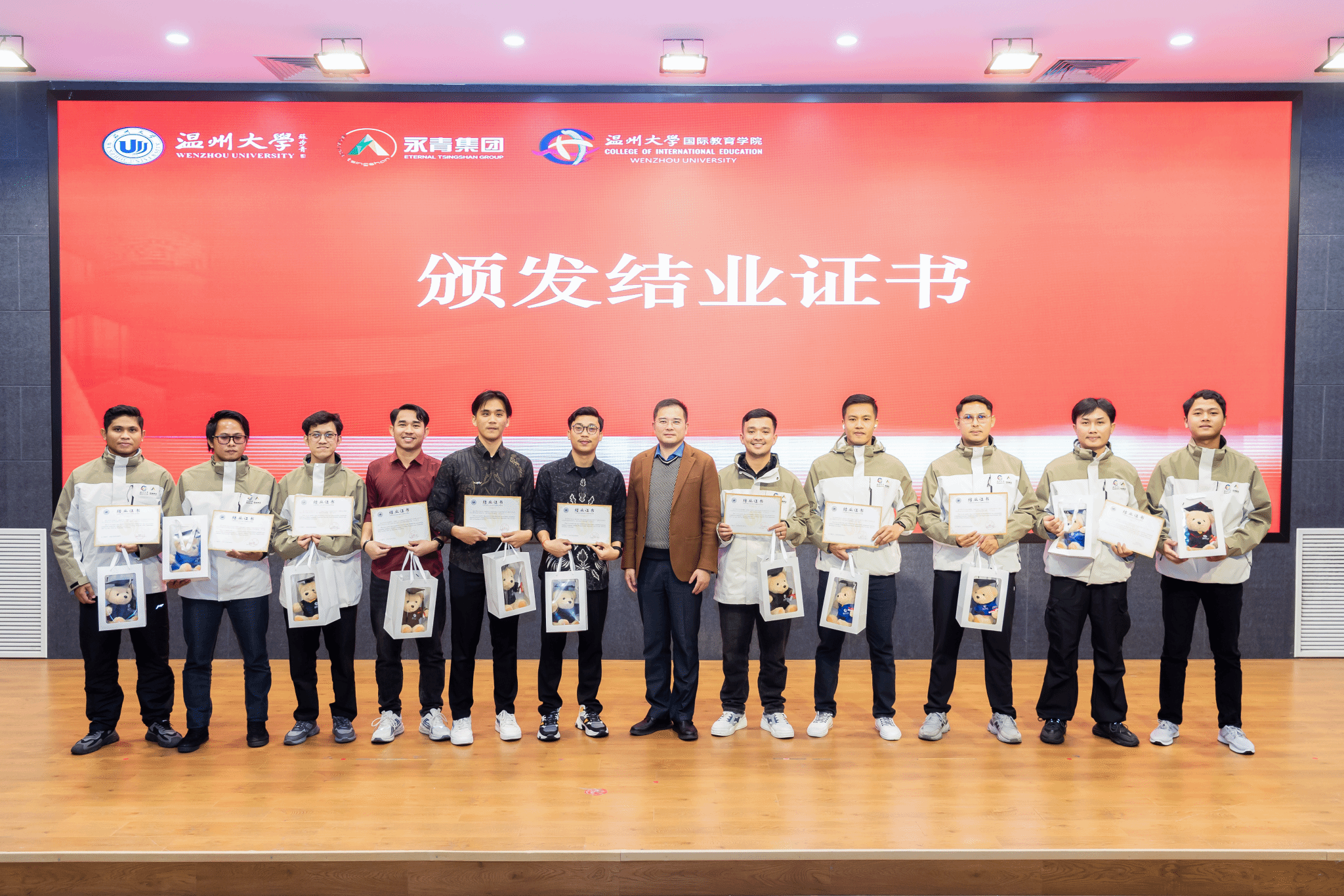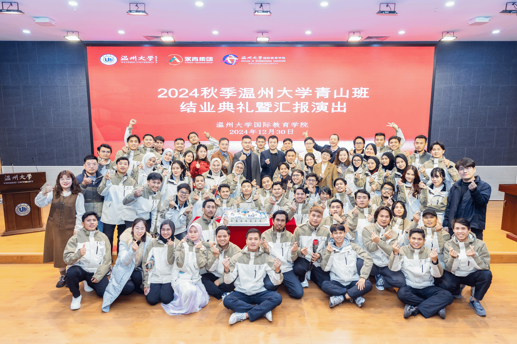 党支部书记林爱菊、院长夏远志、国际交流与合作处副处长熊勇以及青山班全体任课老师、班主任、管理人员和学员们共同出席典礼。结业典礼由青山班学员林文祥和林小雨担任主持人。