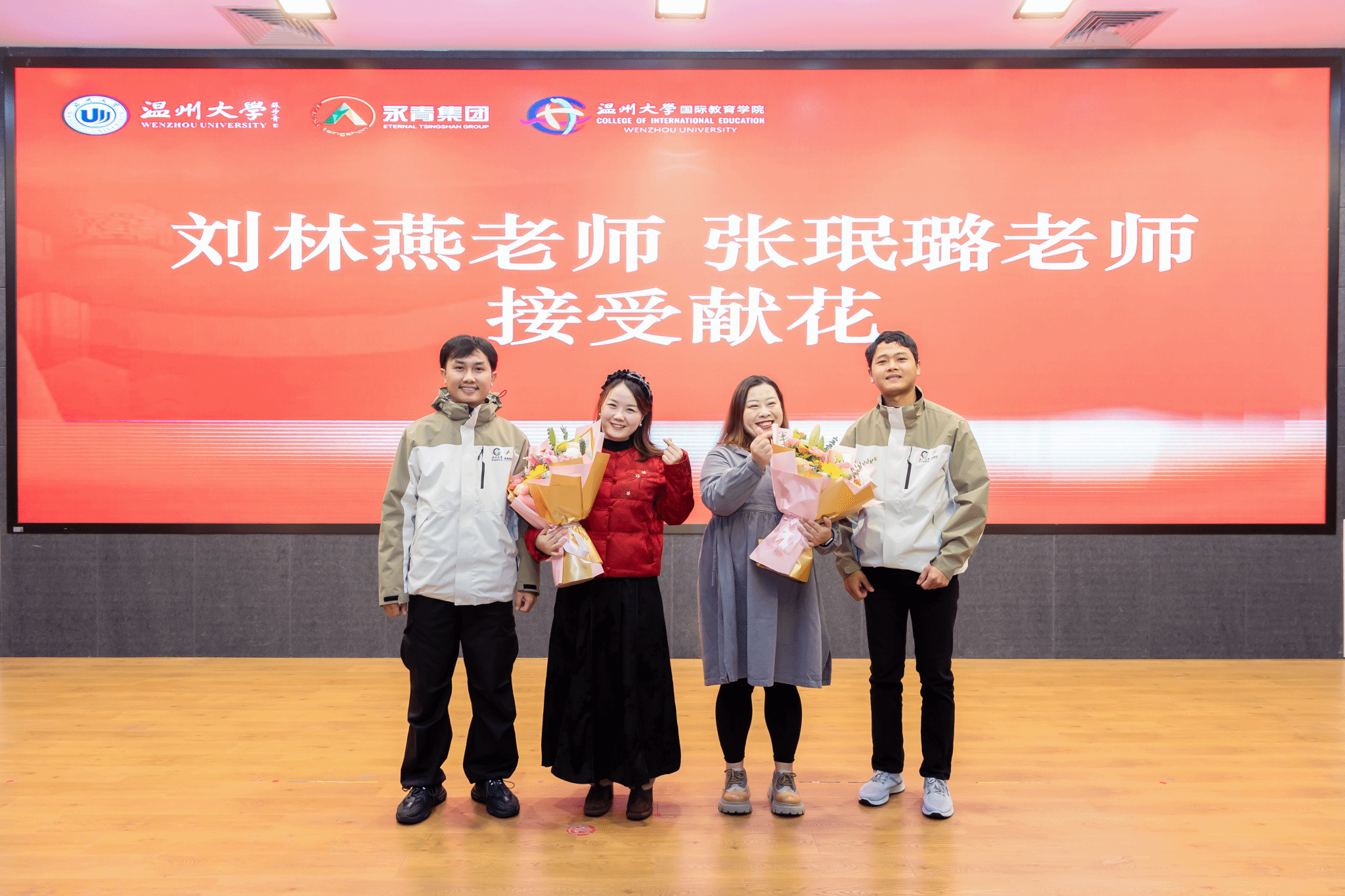 为了感谢班主任及任课老师的谆谆教导,青山班学员们给两位青山班班主任刘林燕老师和张珉璐老师献花,表达感激之情。