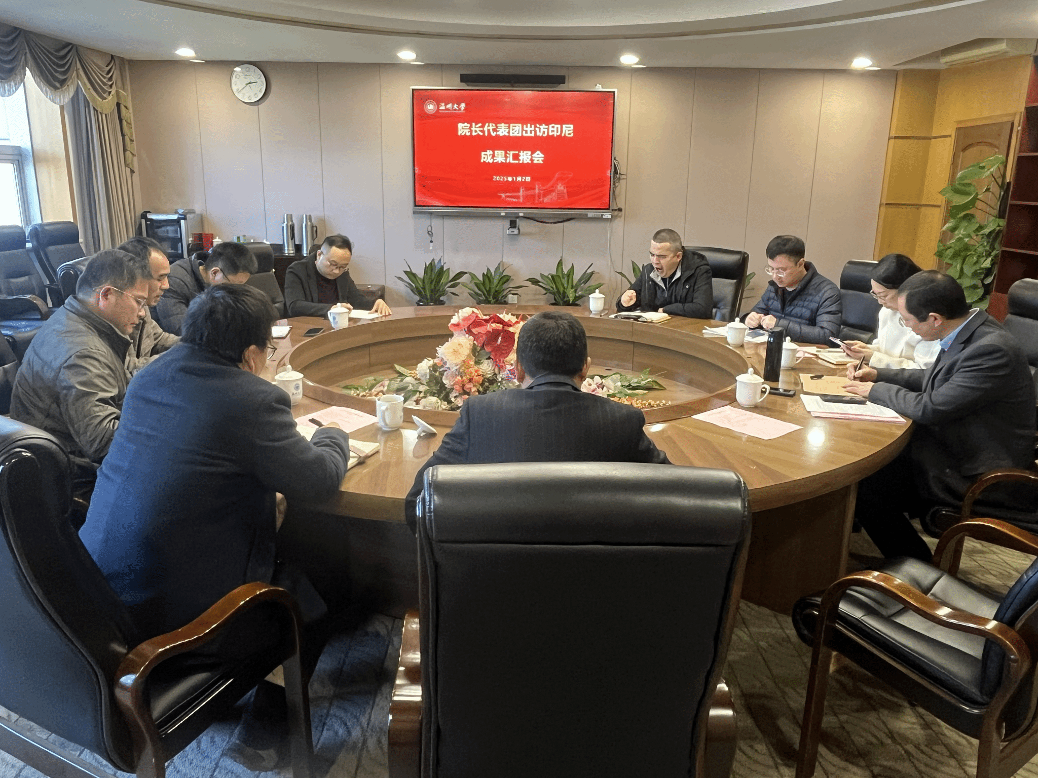 副院长舒亮先后发言,详细汇报了代表团在印尼青山工业园区和塔杜拉科大学的交流情况,并提出了下一步加强与印尼中资企业和高校合作的思路。