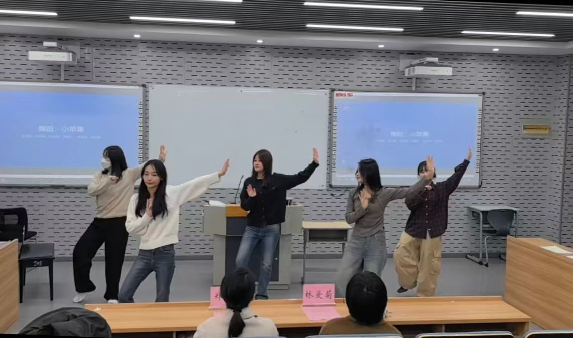 随后,由同学们精心准备的舞蹈《小苹果》欢快登场。她们动作整齐划一,充满活力,将现场气氛推向高潮。紧接着,抒情的歌曲《小幸运》缓缓响起,同学们用纯净的嗓音唱出了对这段研学之旅的感恩与眷恋,歌声在教室里回荡,打动了在场每一个人的心。
