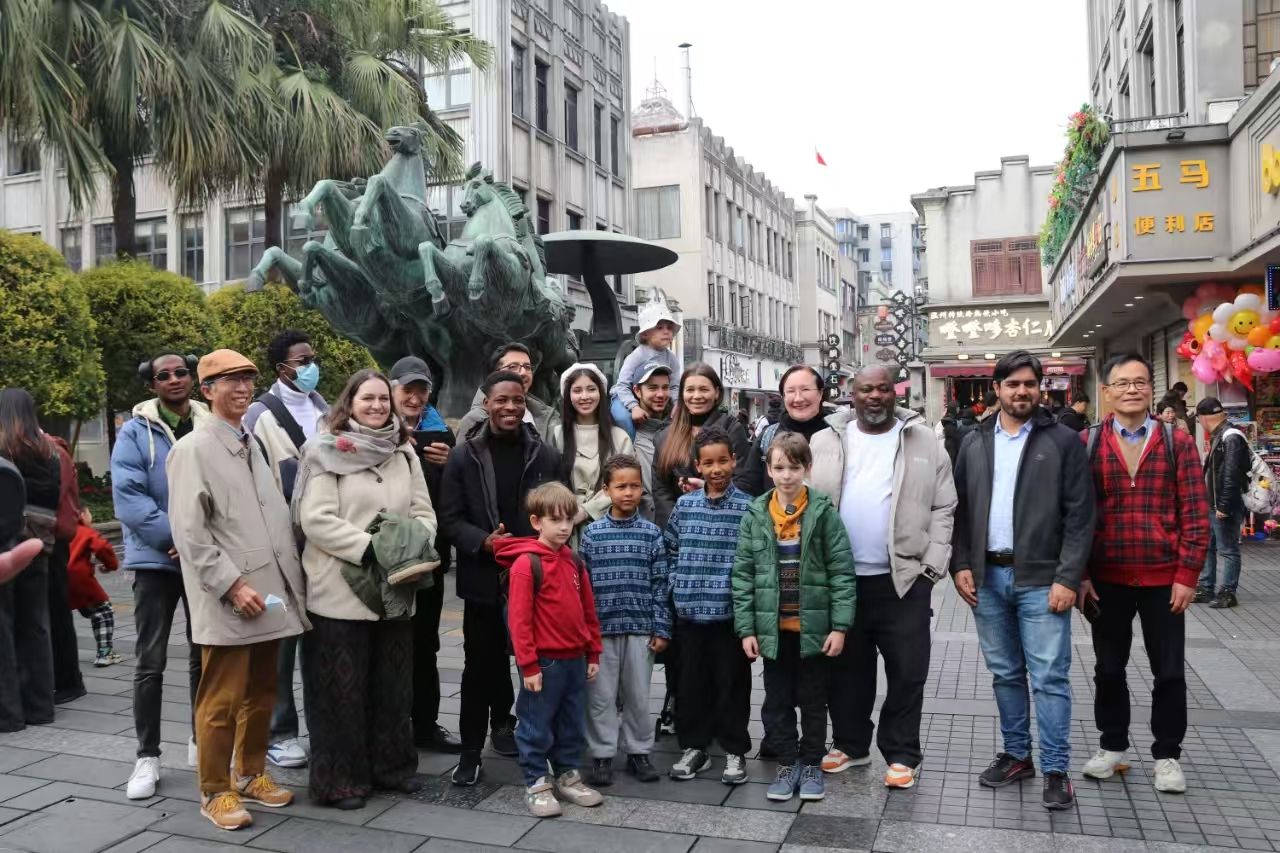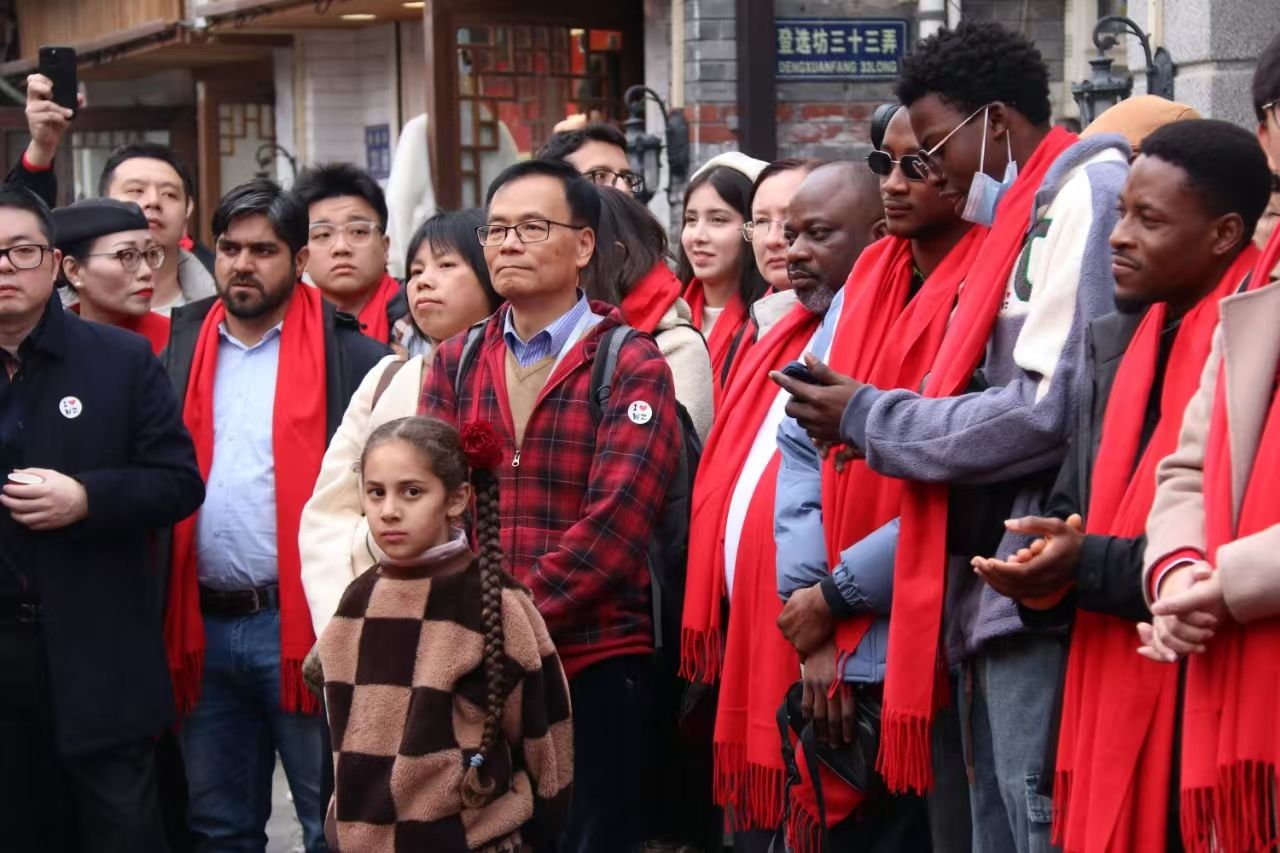 留学生赴鹿城五马街参加了“让世界看见‘千年斗城’”活动。活动通过英文导游讲解五马历史文化街区、俄罗斯友人古筝独奏、书法家现场书写春联与“福”字和捣年糕等互动环节,让学生深入了解了温州古城的历史文化底蕴。