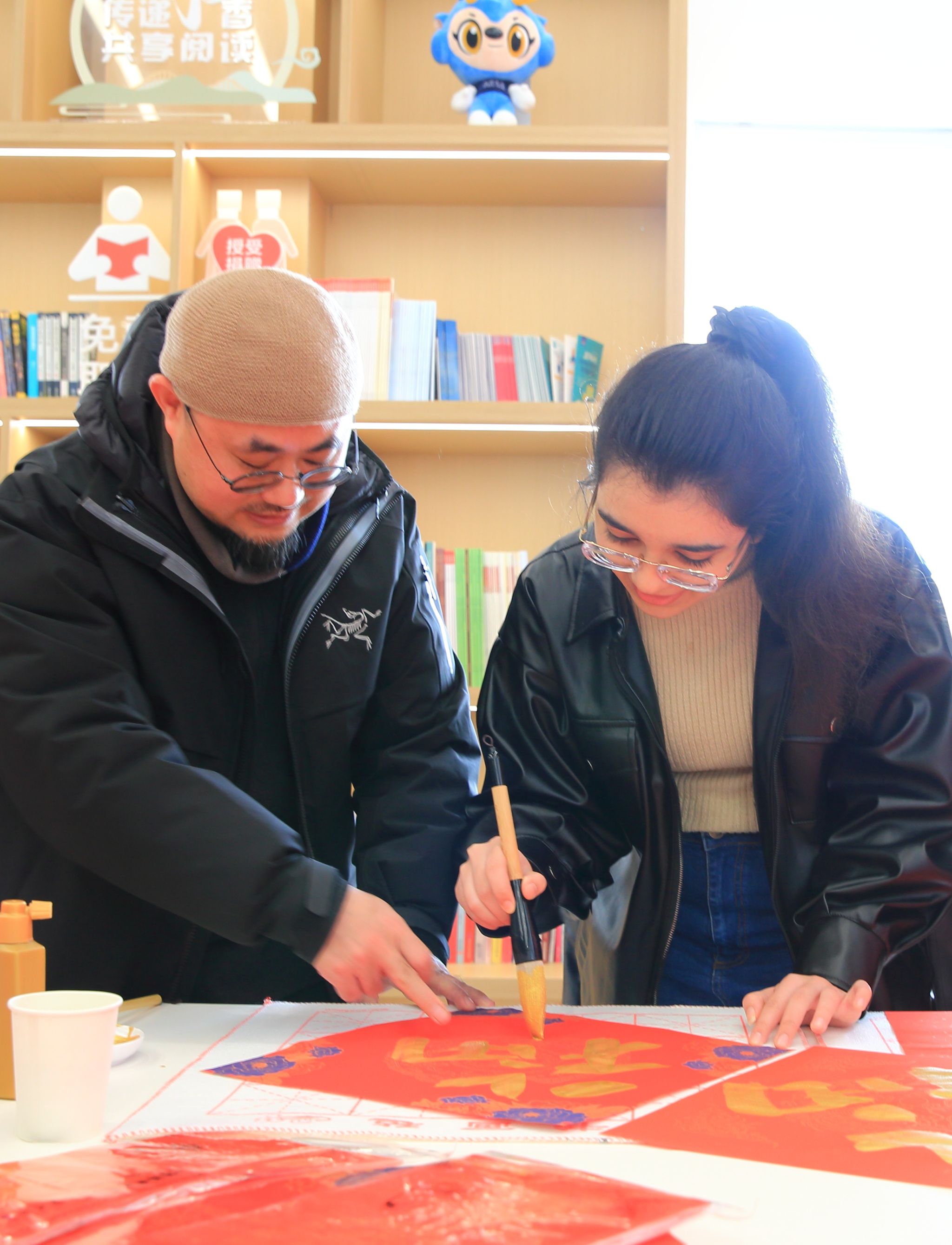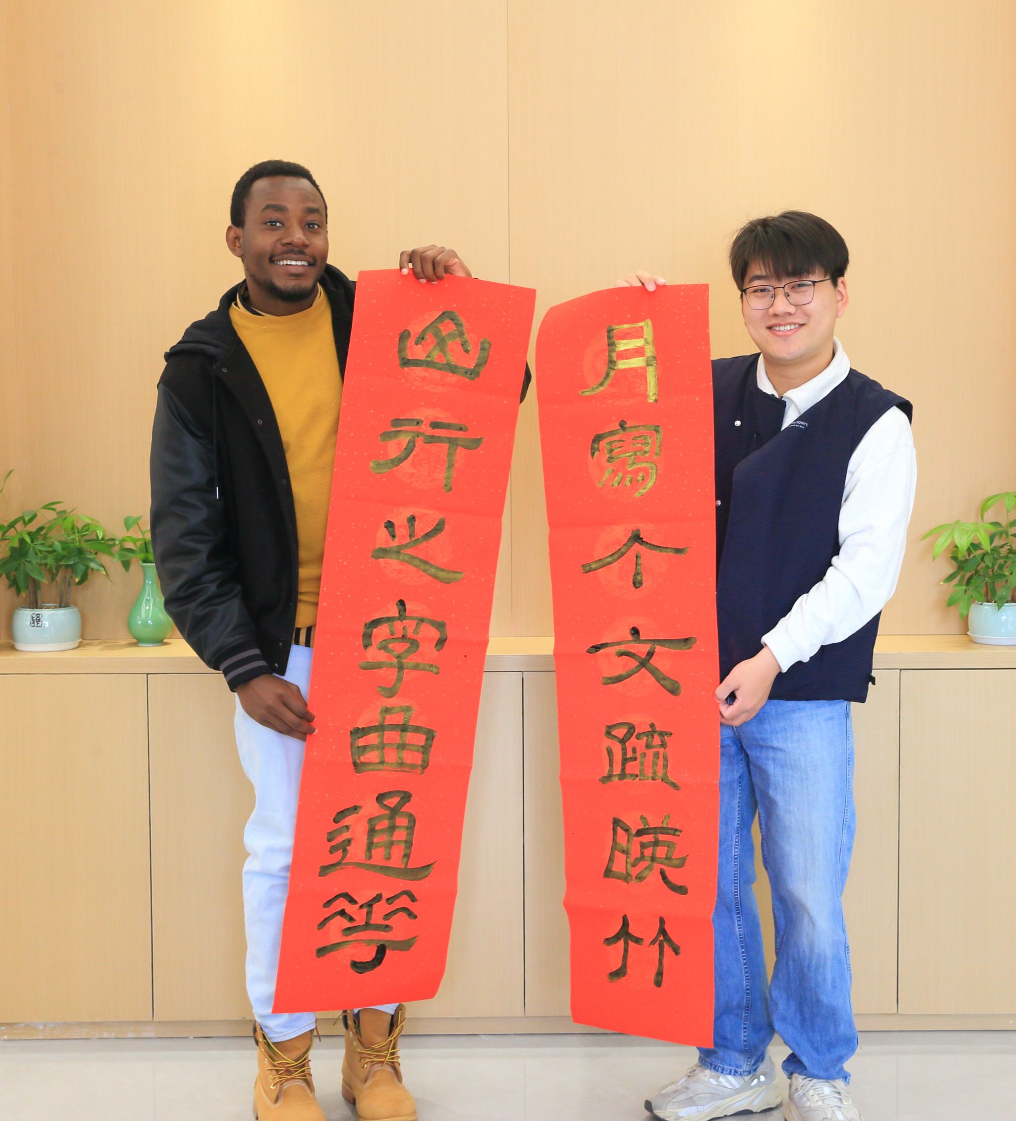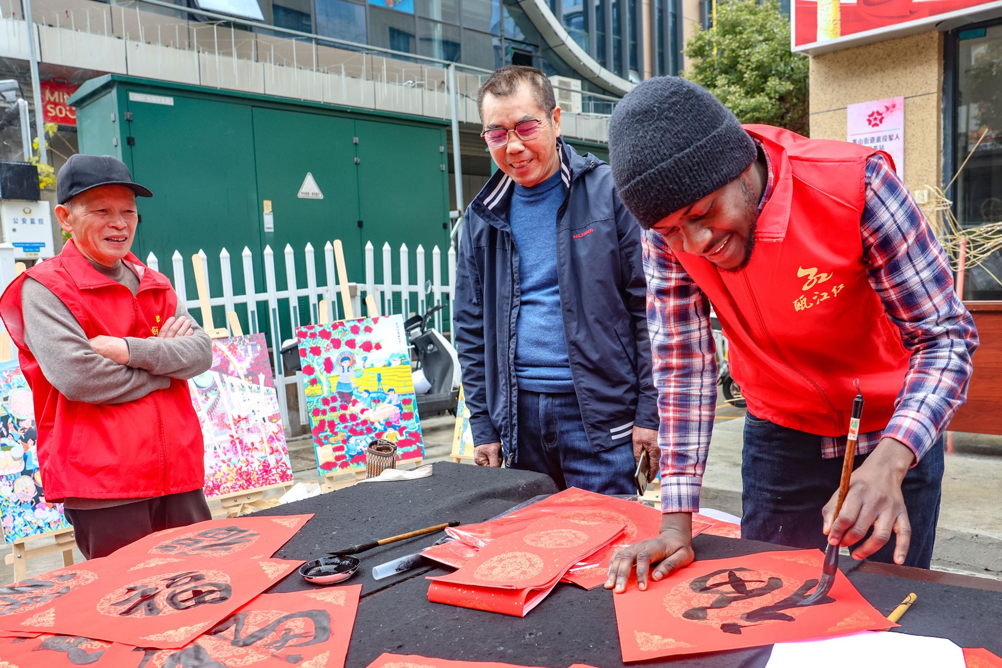 与茶山派出所携手合作,共同举办了以“笔墨辞旧岁,书法贺新春”为主题的特色活动。活动现场,墨香四溢。在专业书法老师的指导下,留学生们兴致勃勃地拿起毛笔,蘸满浓墨,一笔一划地书写着“福”字和春联。他们虽然初涉书法,但每个人都全神贯注,力求将每一个字都写得工整美观。写完后,他们还纷纷展示自己的作品,脸上洋溢着满足和喜悦的笑容。活动后来自乌兹别克斯坦的留学生娜美感慨的说:“春联上的每一个字都蕴含着吉祥和美好的寓意,这让我深刻体会到了中国人对和谐、好运的追求。这次体验让我更加热爱中国文化了。”