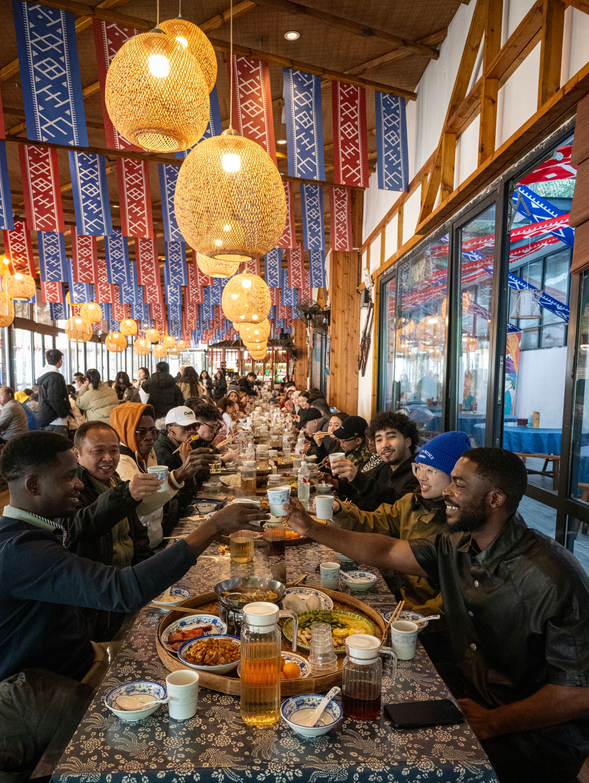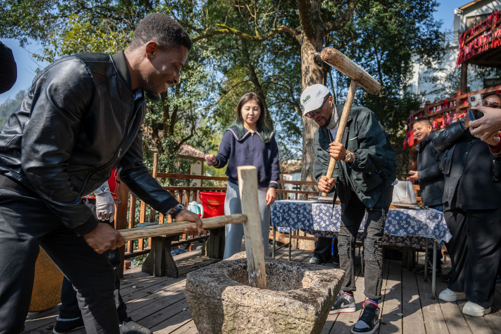 留学生前往文成县西坑畲族镇让川民族村参加了一场别开生面的畲族民俗活动。留学生们在这里体验了拦路歌、竹竿舞、摇锅等传统畲族项目,深入了解了畲族文化的独特之处。同日下午,留学生们还游览了风景秀丽的百丈漈景区。他们的欢声笑语与畲族村民的热情好客交织在一起,共同谱写了一曲民族团结的和谐乐章。“我体验了这里的民俗活动,我最喜欢竹竿舞,我觉得非常新奇、有趣。畲族人民也特别友好。”来自伊朗的留学生诺莎莎,分享了自己的感受。