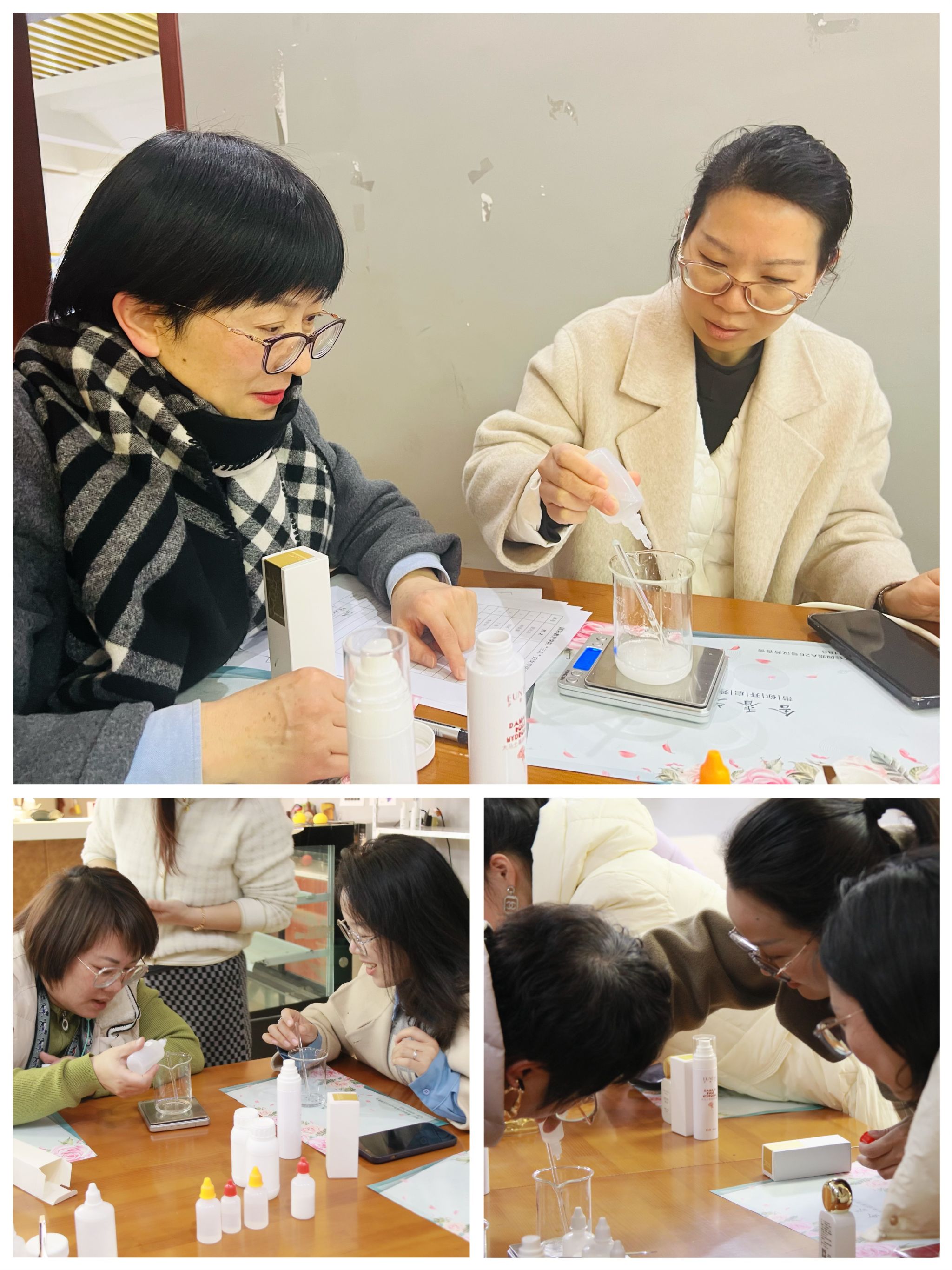 在动手制作环节,大家纷纷化身“护肤达人”,按照步骤细心调配,亲手制作出专属自己的纯天然护肤品。活动现场弥漫着精油的芳香,大家互相交流制作心得,分享护肤经验,欢声笑语不断。