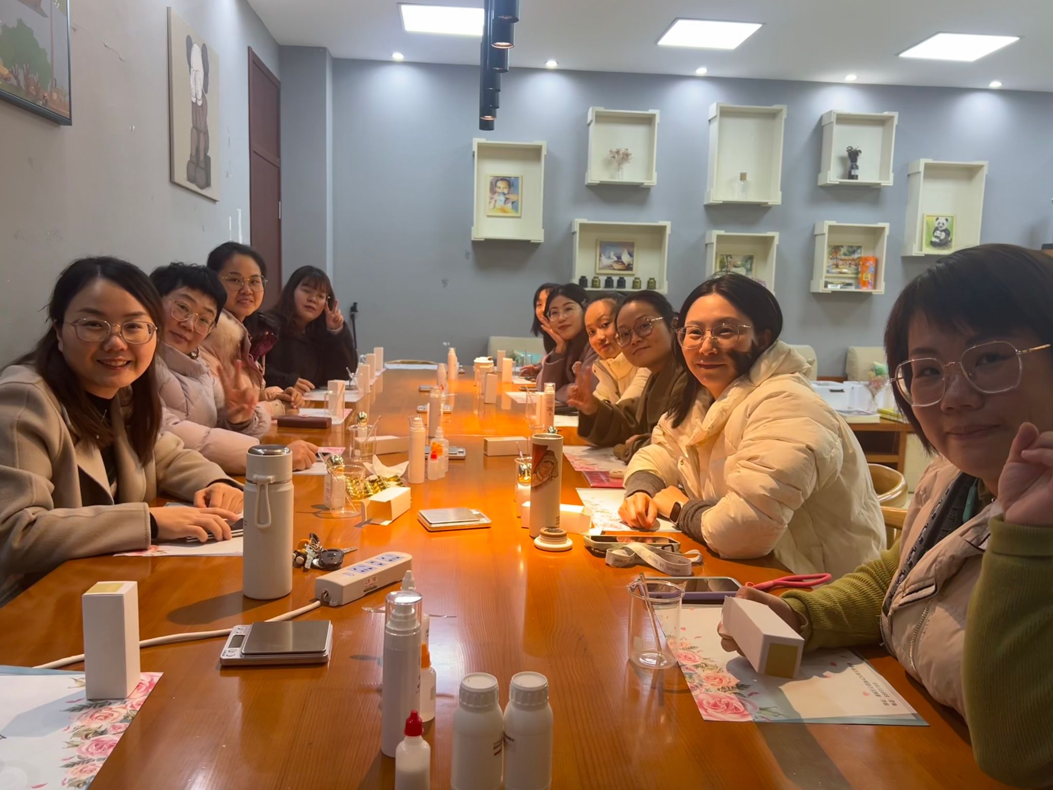 女教职工们和印尼学员齐聚一堂,在专业讲师的指导下,学习天然护肤品知识,亲手制作专属抗老淡纹精华露,度过了一个温馨而有意义的节日。