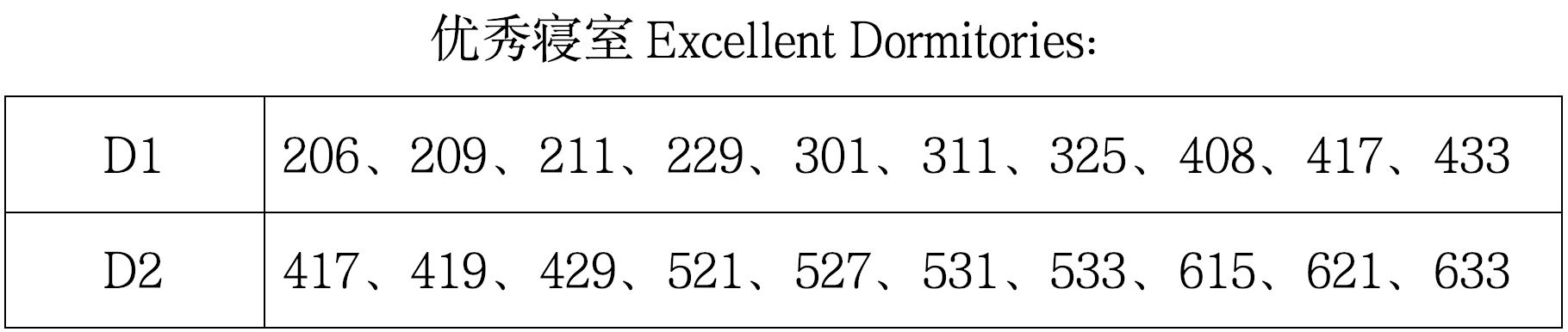 The above outstanding dormitory students are requested to collect their awards from office 221 by this Friday (23rd April).