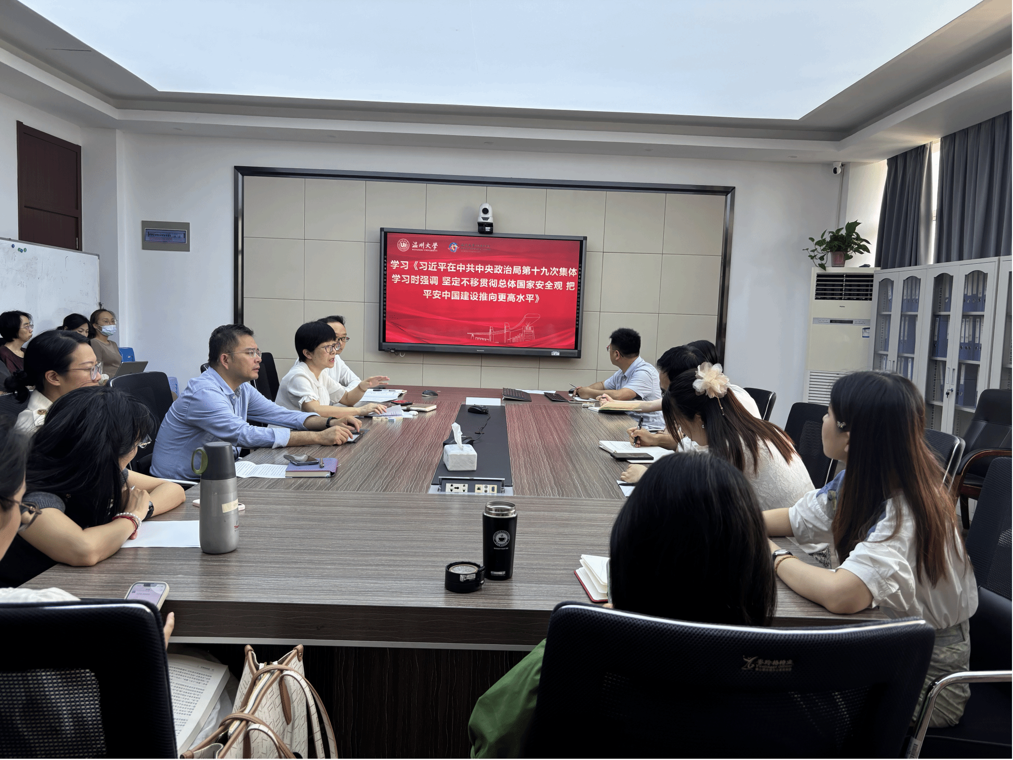 林爱菊书记领学了《习近平在中共中央政治局第十九次集体学习时强调 坚定不移贯彻总体国家安全观 把平安中国建设推向更高水平》。她指出,习近平总书记在中央政治局第十九次集体学习时的重要讲话,为我们在新征程上继续推进国家安全体系和能力现代化指明了前进方向、提供了根本遵循。她希望全体教师要认真学习贯彻习近平总书记重要讲话精神,坚定不移贯彻总体国家安全观,为师生创造安全稳定的校园环境,为平安校园建设贡献力量。
